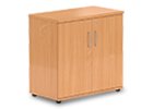 Střední široká kancelářská skříň z laminované dřevotřísky, nastavitelné nohy, vybavena 2...