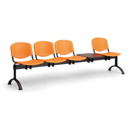 Plastová lavice do veřejných prostorů a čekáren, čtyři místa k sezení a stolek, sedák i opěrák...