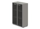 Střední široká kancelářská skříň z laminované dřevotřísky, nastavitelné nohy, vybavena 2...