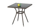 Zahradní stůl do komerčních prostorů, kombinace kovové podnože a skleněné desky, stůl odolá...