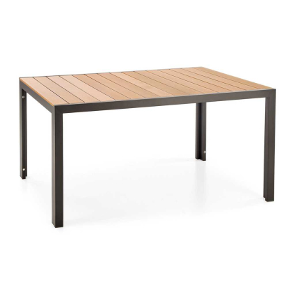 Zahradní stůl s obdélníkovou deskou, kovová konstrukce s deskou z imitace dřeva, rozměry 150 × 90...