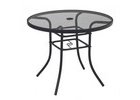 Spousta stolů má desku z tvrzeného skla – tento materiál je vůči počasí prakticky imunní a velmi snadno se čistí. Sklo je zpravidla rámované jiným materiálem, který jej chrání před nárazy ze stran.