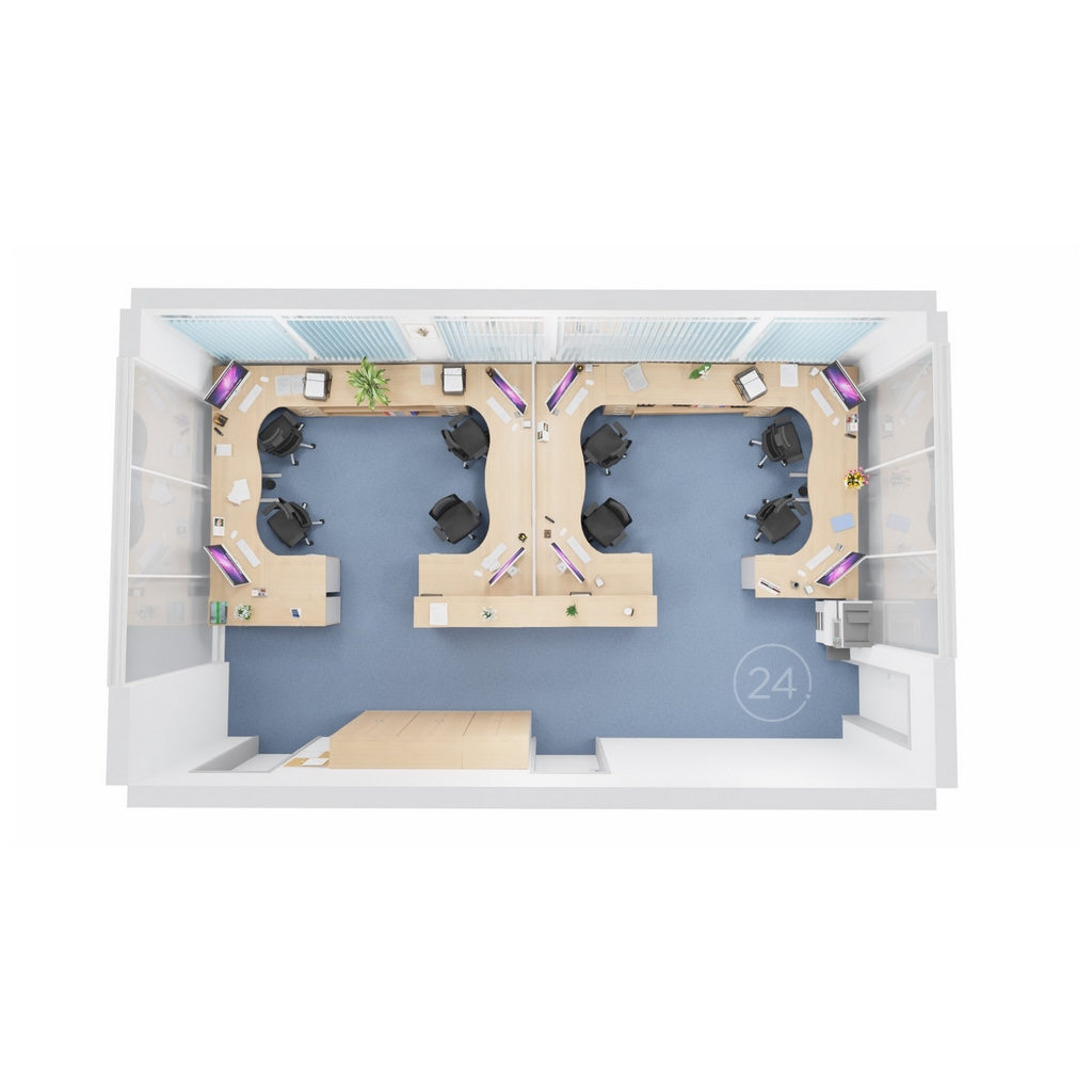 3D vizualizace Visio LUX: 1× kancelář, max. 6 pracovních míst