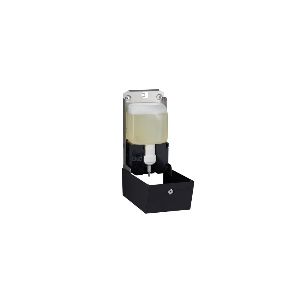 Konstrukce z nerezové oceli odolává vlhkosti a skvěle se udržuje. Výhodou je také cylindrický zámek na vrchní straně dávkovače. Ten chrání jeho obsah a zajišťuje snadnou výměnu sáčku s mýdlem. Dávkovač připevněte minimálně 130 mm nad povrchem.