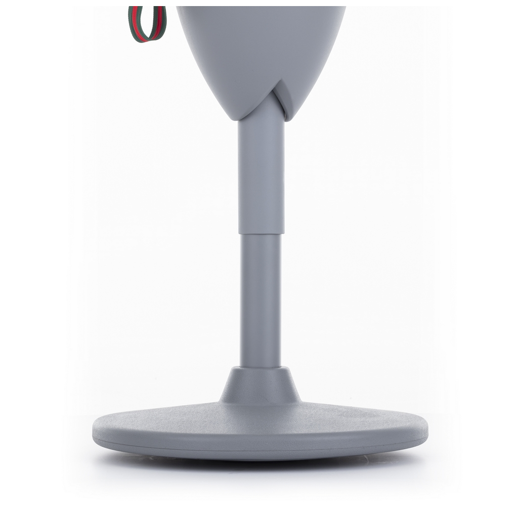 Stolička se skládá z bytelné kovové podnože a otočného sedáku, který je potažený pružnou voděodolnou textilií a vyplněný pohodlnou tvarovanou pěnou.