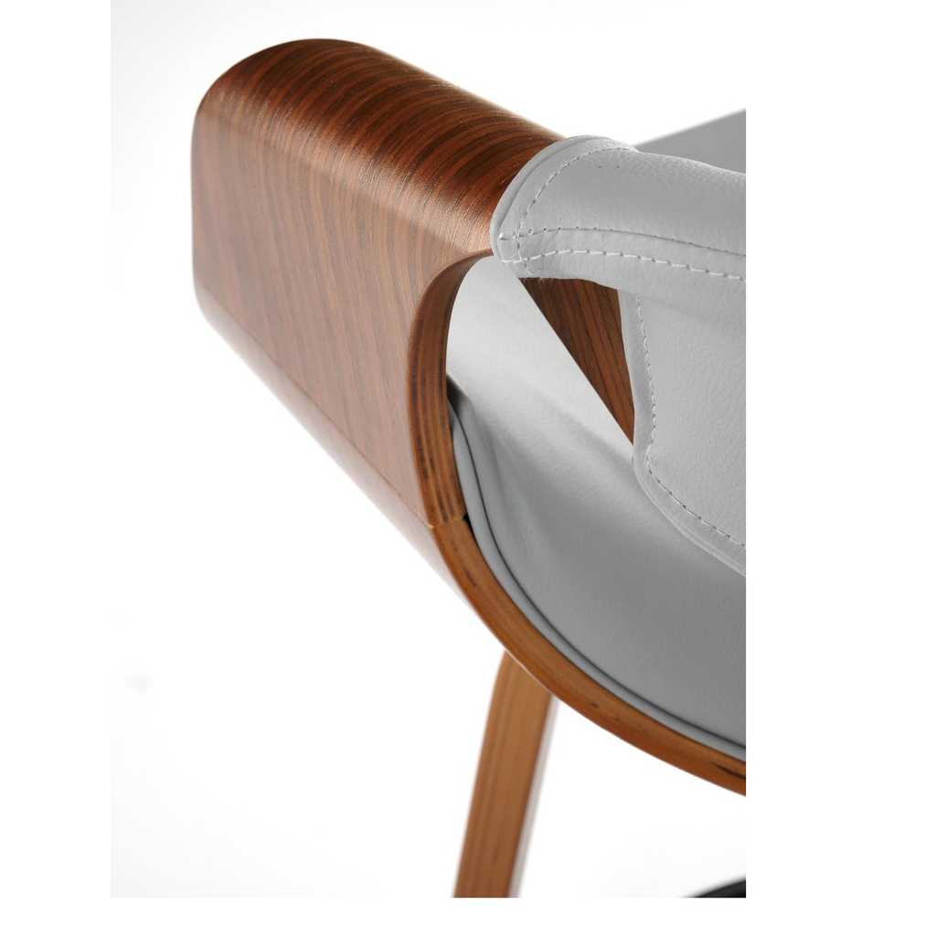 Dřevěná je také konstrukce sedáku. Ten je čalouněný decentní eko kůží, která zvýší komfort při sezení.