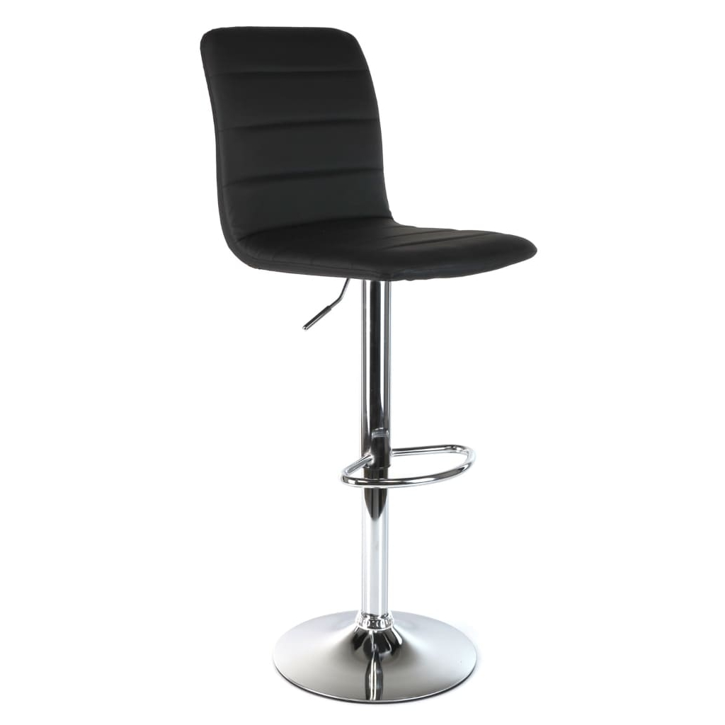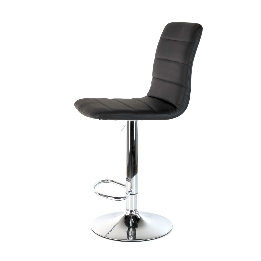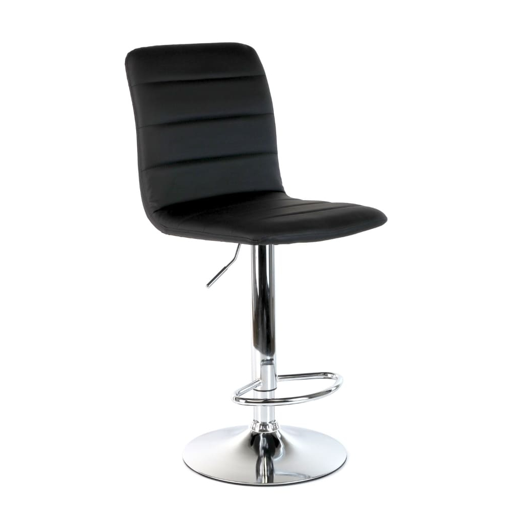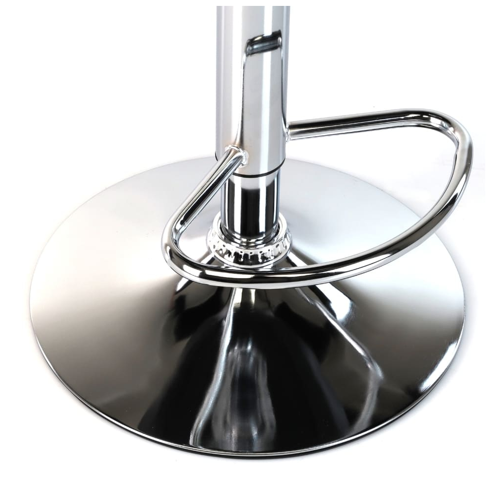 Židle stojí na chromované noze se základnou o průměru 38,5 cm. Noha se volně otáčí a pomocí páčky pod sedákem si výšku sedu přizpůsobíte v rozsahu od 59 do 80 cm. K vašemu komfortu přispěje šikovná opěrka nohou (40 cm pod sedákem).