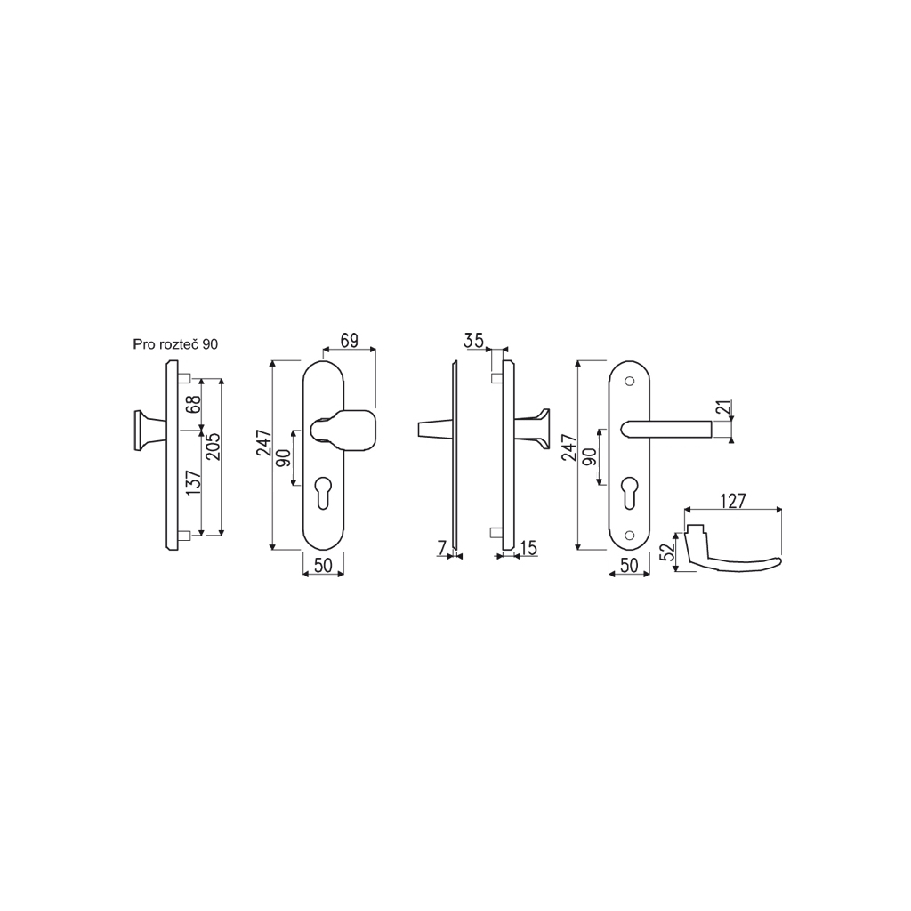 Kování R.111.PZ.90.TB3 bez rozety (stříbrná)
