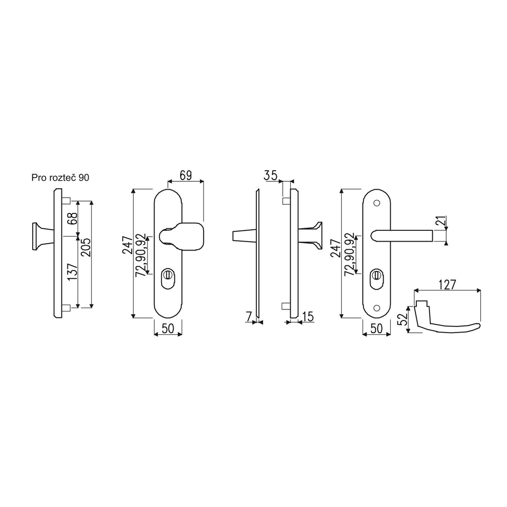 Bezpečnostní kování R.111.ZA90.TB3 – s rozetou