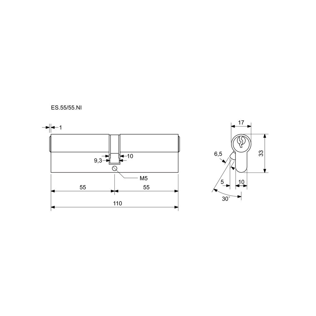 Bezpečnostní oboustranná vložka RC3 55/55 mm