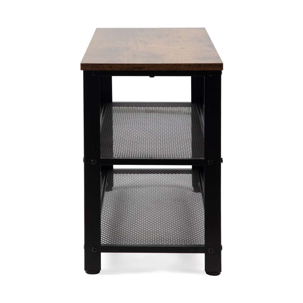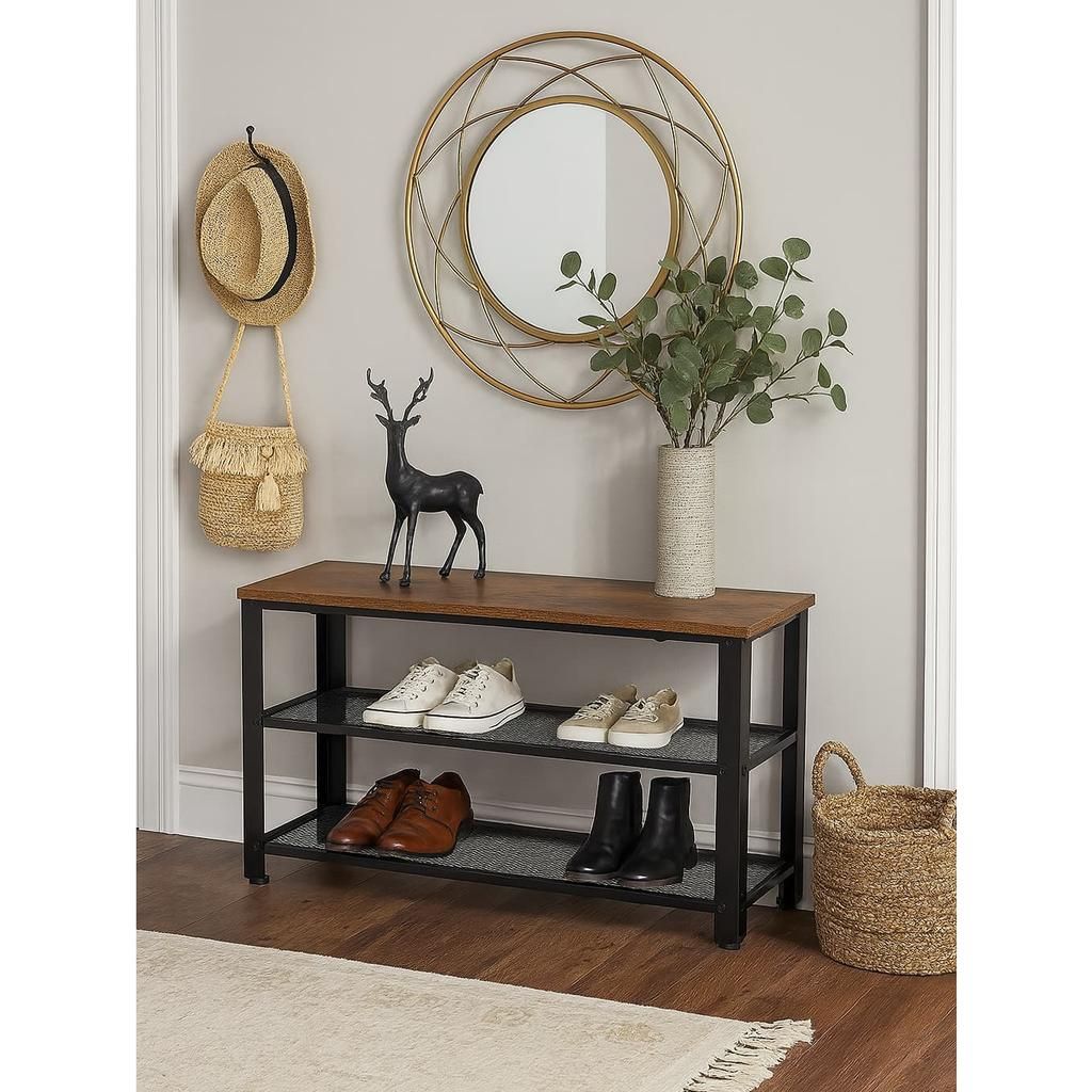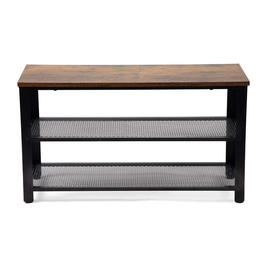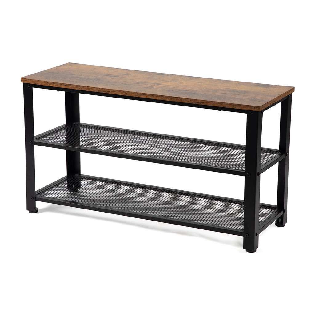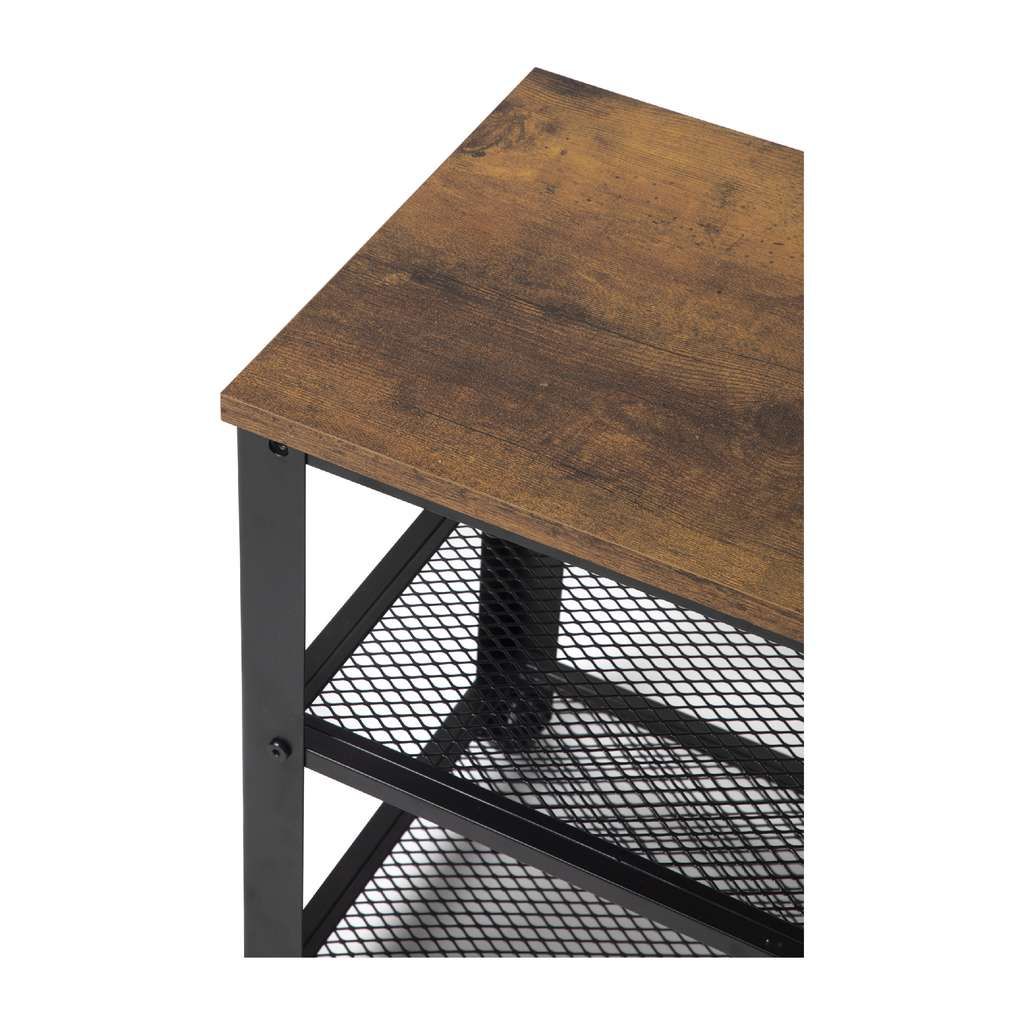 Botník Agosto představuje ideální řešení pro udržení pořádku v předsíni či chodbě. Díky stabilní kovové konstrukci a odolné desce z dřevěného materiálu nabízí pevnost a dlouhou životnost. Dvě mřížkové police zajišťují dostatek prostoru pro uskladnění více párů obuvi, zatímco vrchní plocha slouží jako praktické místo k odložení drobností nebo i jako lavička při obouvání.