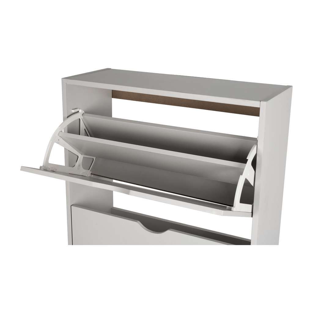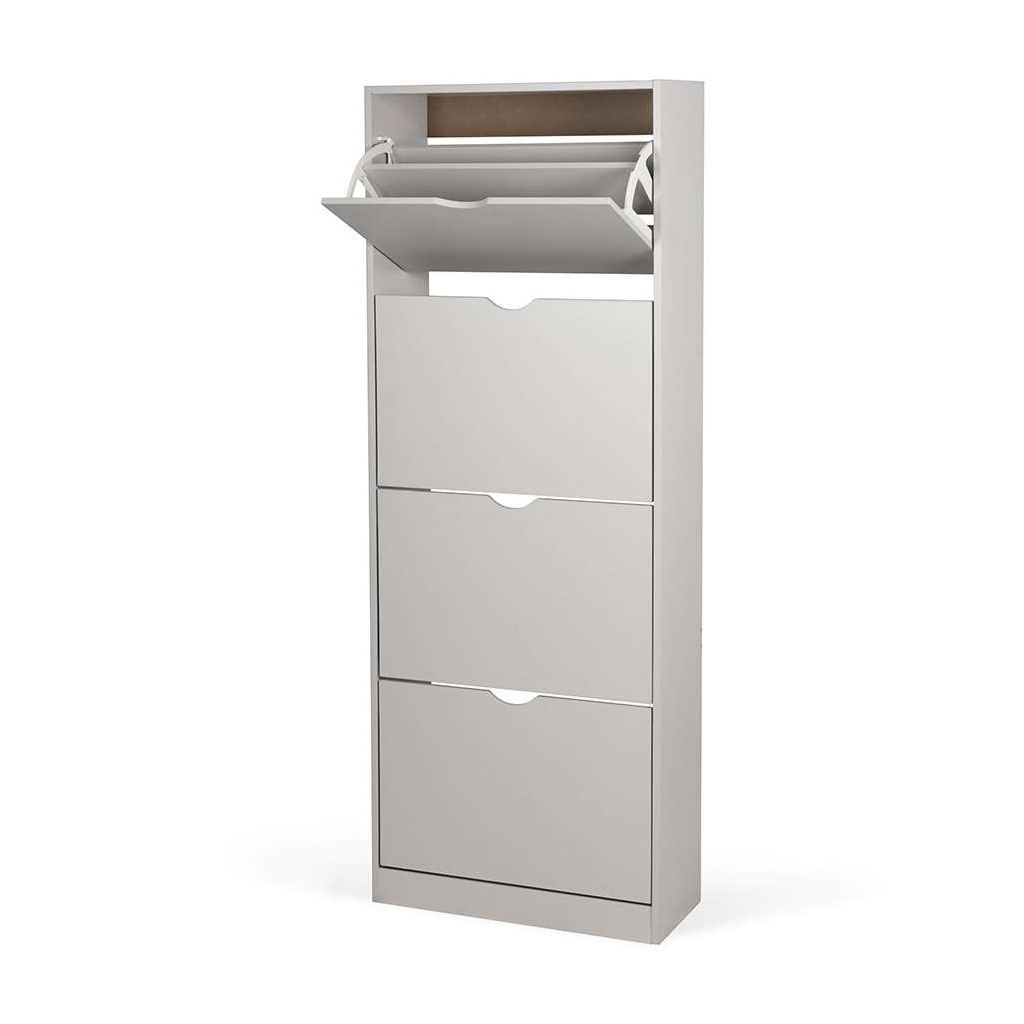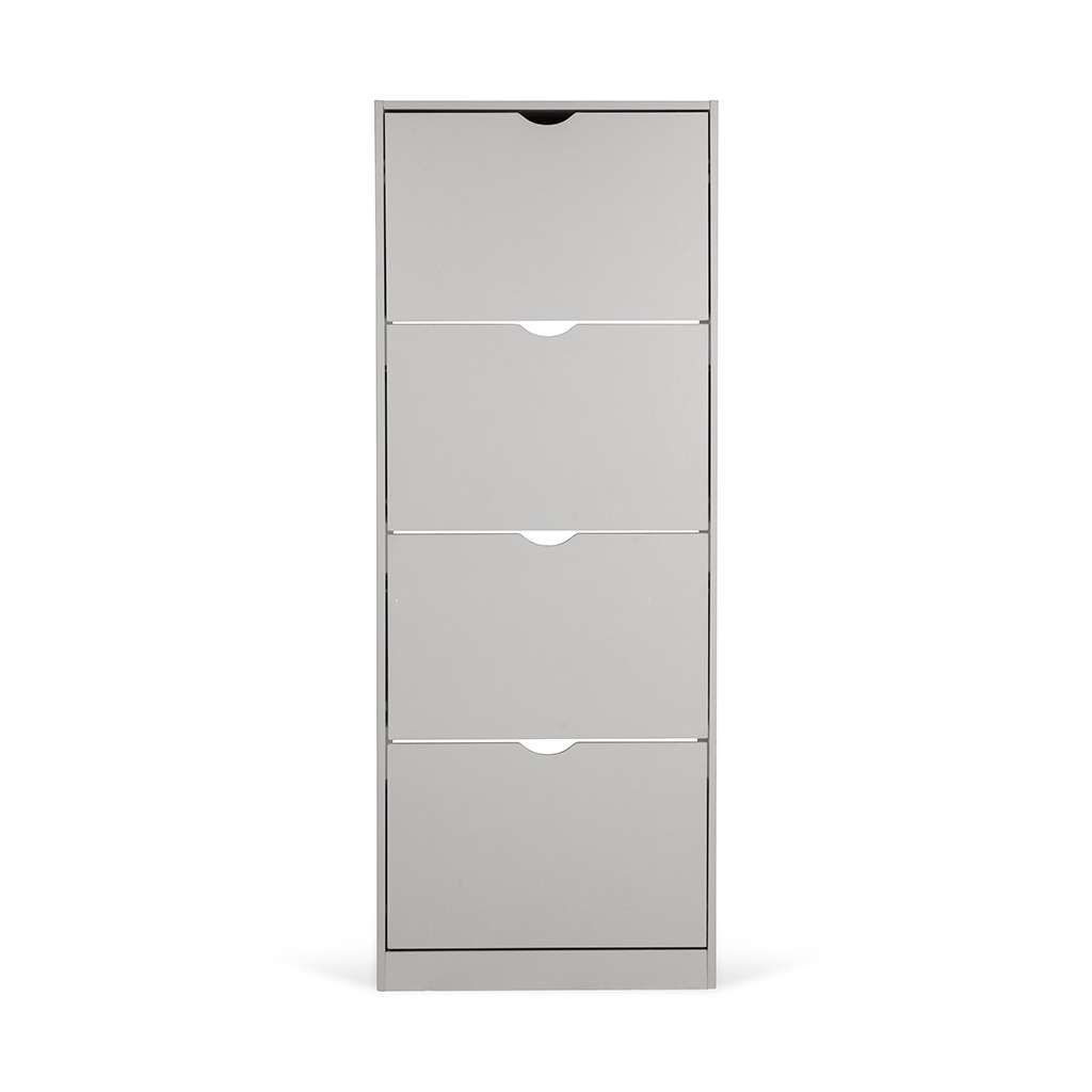 Botník Escondido - 4 oddíly je ideálním řešením pro uspořádání obuvi i v menších prostorách, díky svému úzkému a kompaktnímu tvaru. Využívá čtyři praktické výklopné přihrádky, které umožňují snadný přístup bez potřeby tradičních úchytek, místo kterých slouží výřezy pro otevření.