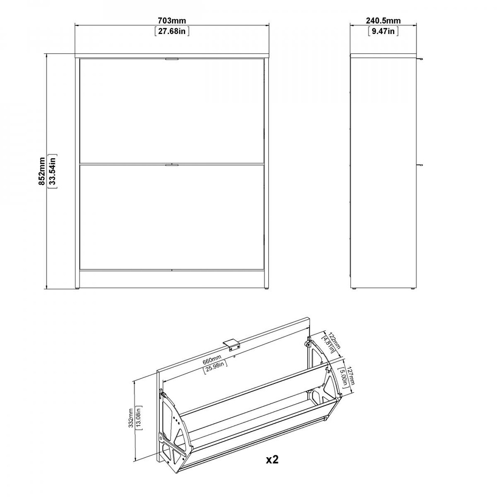 - Dvě výklopné přihrádky pro pohodlné uložení obuvi