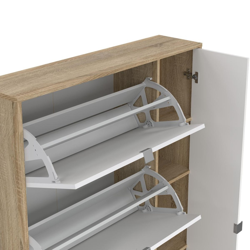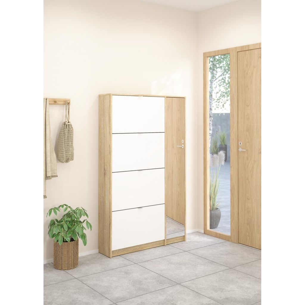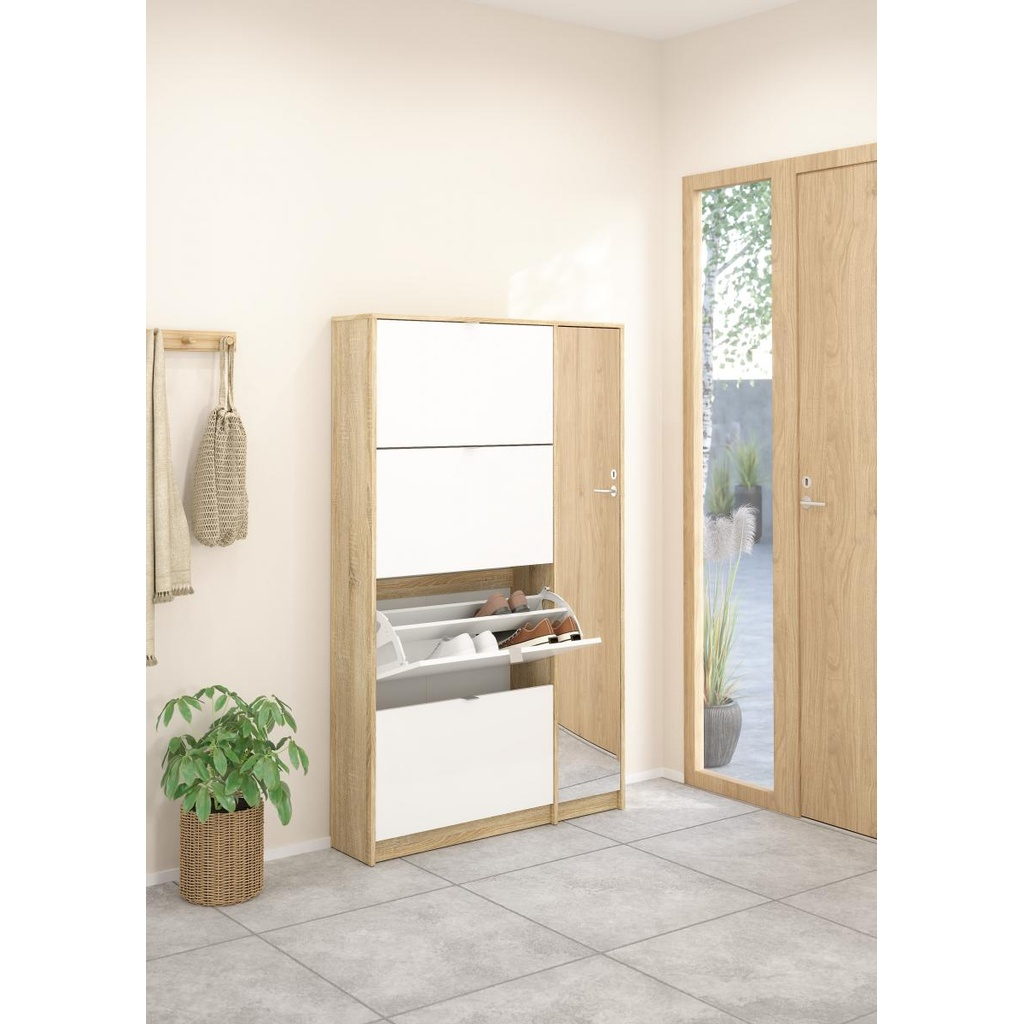 Botník Flap XL se zrcadlem, dub sonoma / bílý lesk / stříbrná