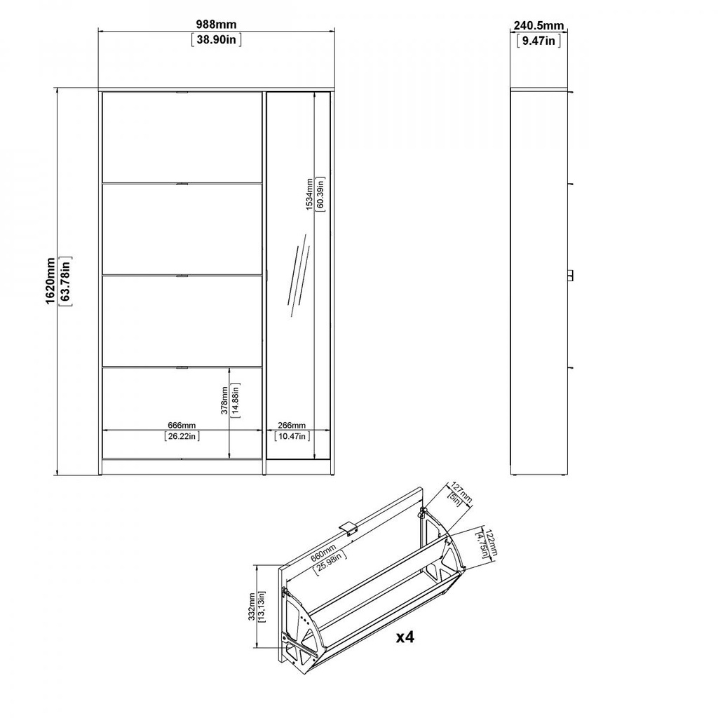 Botník Flap XL se zrcadlem je skvělým řešením pro každou předsíň, která potřebuje efektivně uspořádat obuv a zároveň zvětšit opticky prostor díky vestavěnému zrcadlu. Jeho prostorné úložné prostory s výklopnými dvířky umožňují uložení velkého množství bot, což pomůže udržet pořádek a minimalizovat nepořádek.