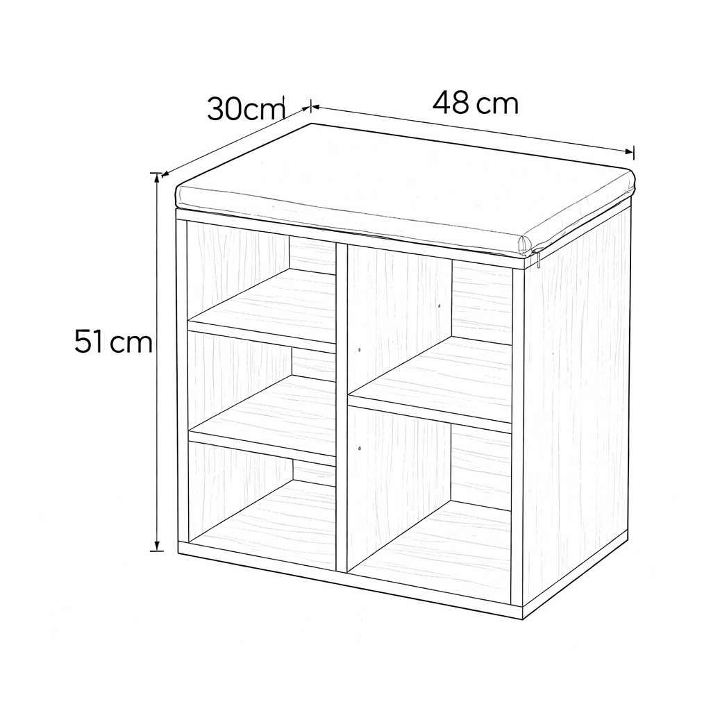 Čtyři prostorné přihrádky skvěle pojmou různé druhy bot, tašky nebo další doplňky, takže máte vše přehledně uspořádané na jednom místě. Stabilní a pevná konstrukce z kvalitního dřeva zaručuje dlouhodobou odolnost a funkčnost při každodenním používání.