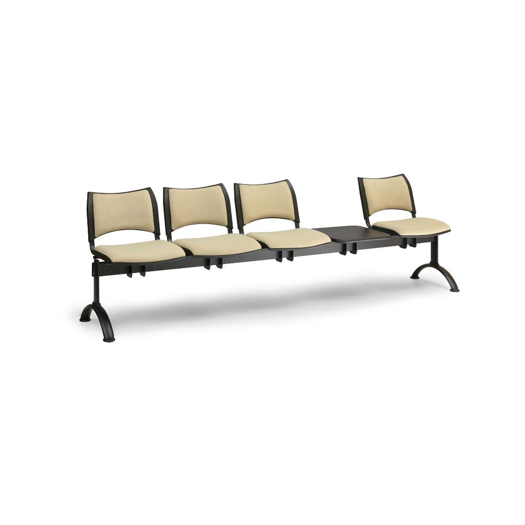 Čalouněná lavice SMART v provedení s černými kovovými nohami a odkládacím stolkem je skvělým vybavením do veřejných prostorů, hal či nejrůznějších typů čekáren. Jednotlivá místa k sezení jsou umístěna na ocelové konstrukci lavice. Sedák i opěrák jsou čalouněny příjemnou látkou, díky které bude sezení ještě pohodlnější.