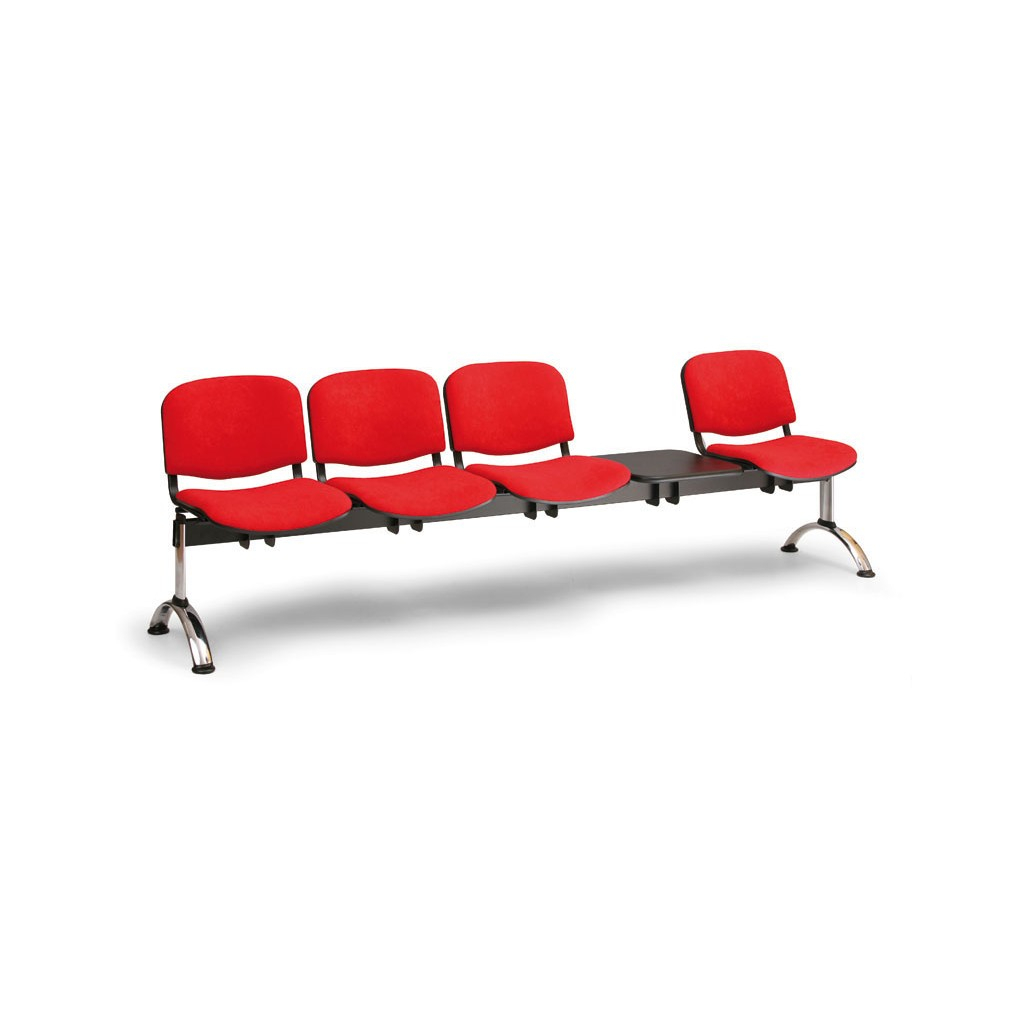 Konstrukce nabízí čtyři místa k sezení, mezi kterými je umístěn odkládací stolek. Disponuje také stabilní podstavou s rozšířeným zakončením nohou proti poškození podlahy. Nosnost jednoho místa čalouněné lavice je 100 kg a dodáváme ji v pěti barevných provedeních. V černé, modré, červené, oranžové a zelené barvě.