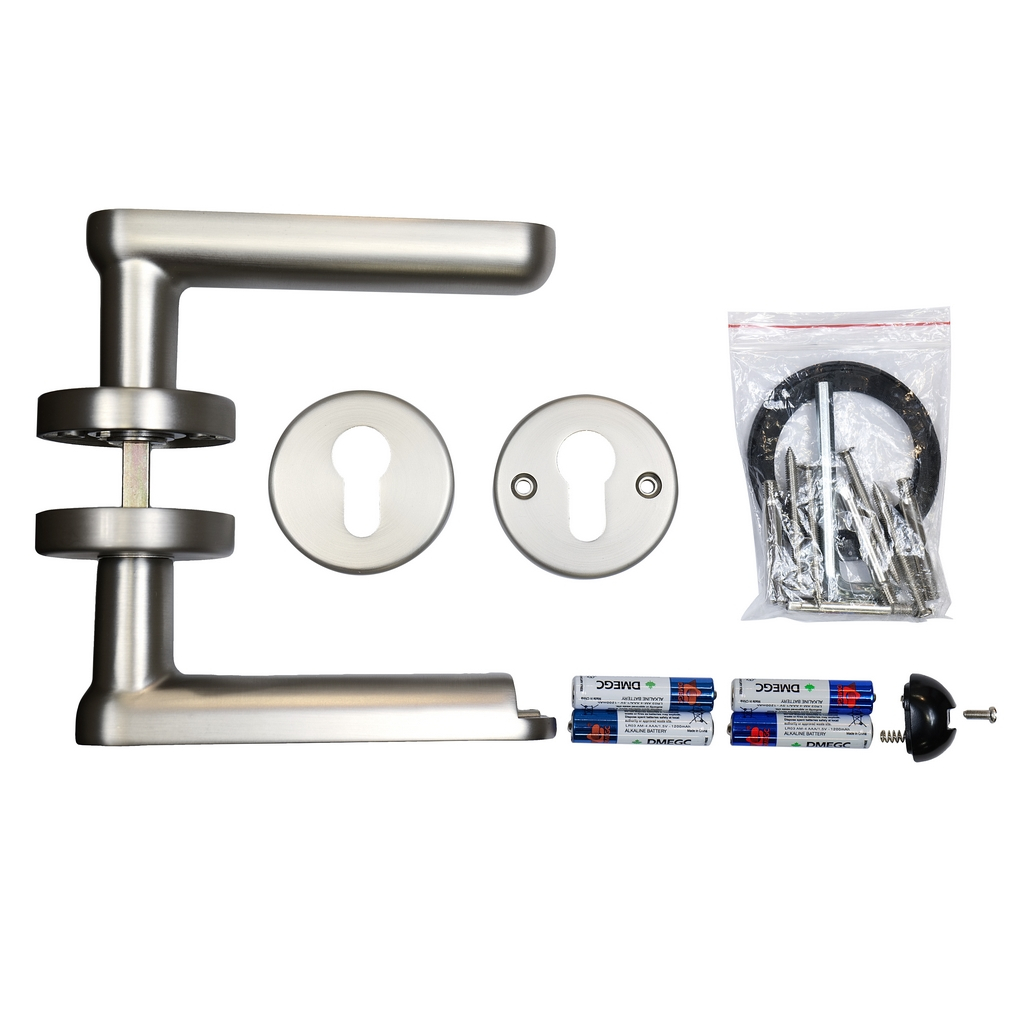 Montáž je stejně jednoduchá jako u běžné kliky. Smart Touch Handle je kompatibilní s běžnými zadlabacími zámky, na dveřích samotných tedy nemusíte měnit nic. Tloušťka dveří by měla být mezi 38 a 58 mm.