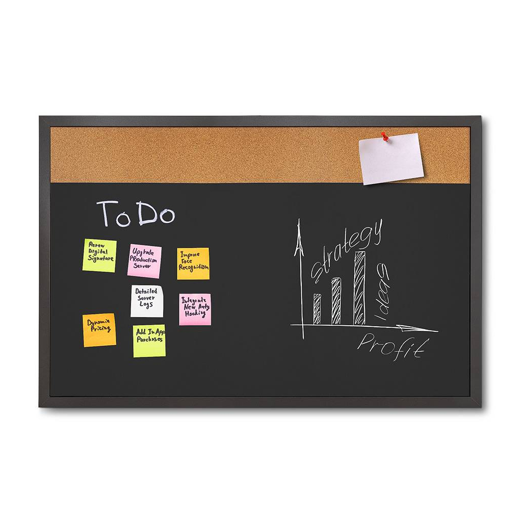 Korkové nástěnky jsou skvělým prostředkem k vyvěšování tiskovin, poznámek a fotografií, whiteboardy a černé tabule zase nabízejí možnost rychlého popisování a mazání podle potřeby, zpravidla s možností využití magnetů. A proč to nespojit do jednoho výrobku? Přesně tato filosofie stála u zrodu řady Combi Board.