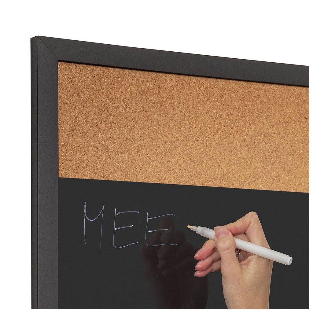 Tento model s elegantním dřevěným rámem kombinuje černou tabuli s korkovou nástěnkou. Je určen k zavěšení na stěnu, takže nezabere v místnosti prakticky žádné místo. Je jen na vás, zda tabuli nainstalujete vodorovně, nebo svisle – její konstrukce umožňuje obojí.