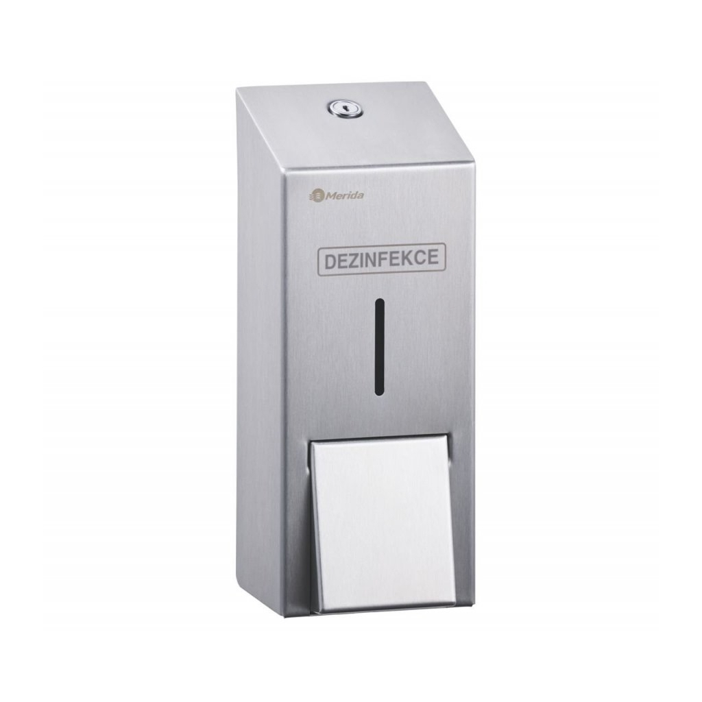 Konstrukce z nerezové oceli odolává vlhkosti a skvěle se udržuje. Výhodou je také cylindrický zámek na vrchní straně dávkovače. Ten chrání jeho obsah a zajišťuje snadné dolévání dezinfekčního roztoku o objemu