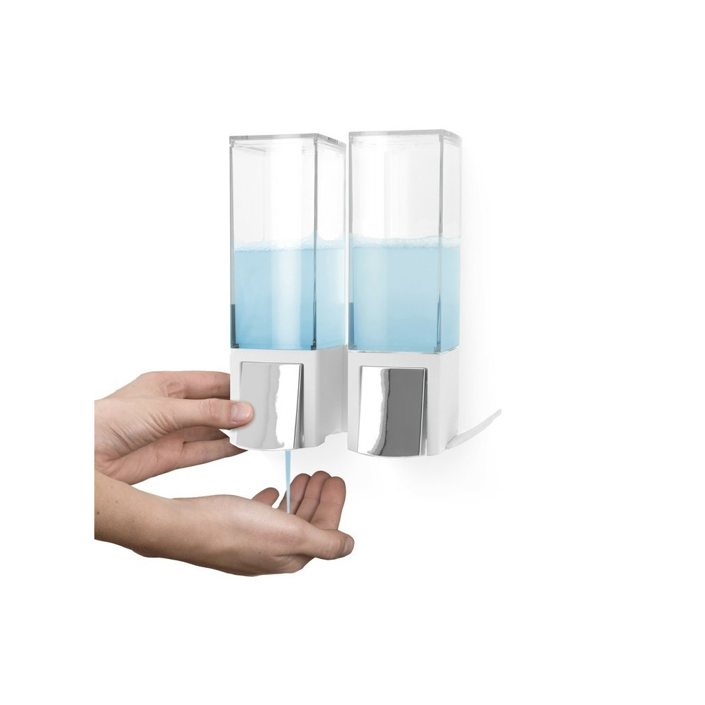 Dvojitý dávkovač tekutého mýdla Compactor Edge je praktický pomocník, který vám usnadní mytí rukou nejen na toaletách nebo v koupelnách. Díky mýdlu, které si nadávkujete přesně podle potřeby, budete mít umývání mnohem snazší. Dávkovač navíc po stranách disponuje úchyty k zavěšení žiletky či houbiček.