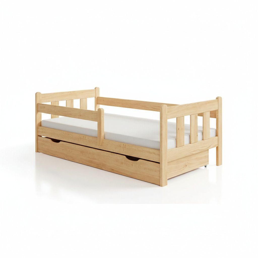 Praktickým prvkem této postele je výsuvný šuplík, do něhož lze ukládat peřiny i polštář nebo náhradní povlečení apod. Postel je vyrobena z masivního borovicového dřeva, stejně jako přidaný šuplík. Matrace není součástí postele a je třeba ji dokoupit. Spací plocha činí 160 na 80 cm.