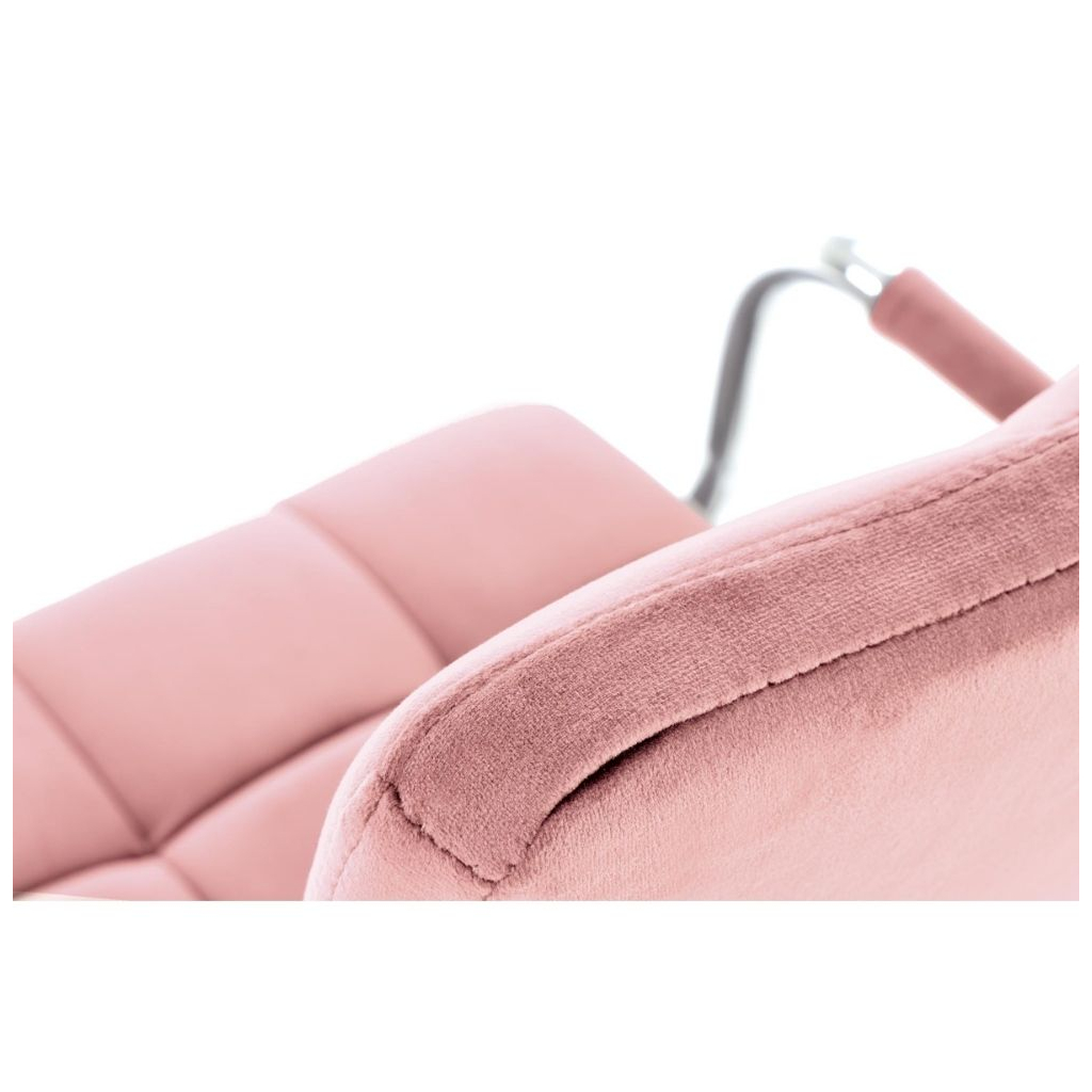 Židle je čalouněná sametovou prošívanou látkou. Konstrukci židle tvoří kovová základna s pěti rameny zakončenými plastovými kolečky, která jsou vhodná na měkké podlahy a koberce.
