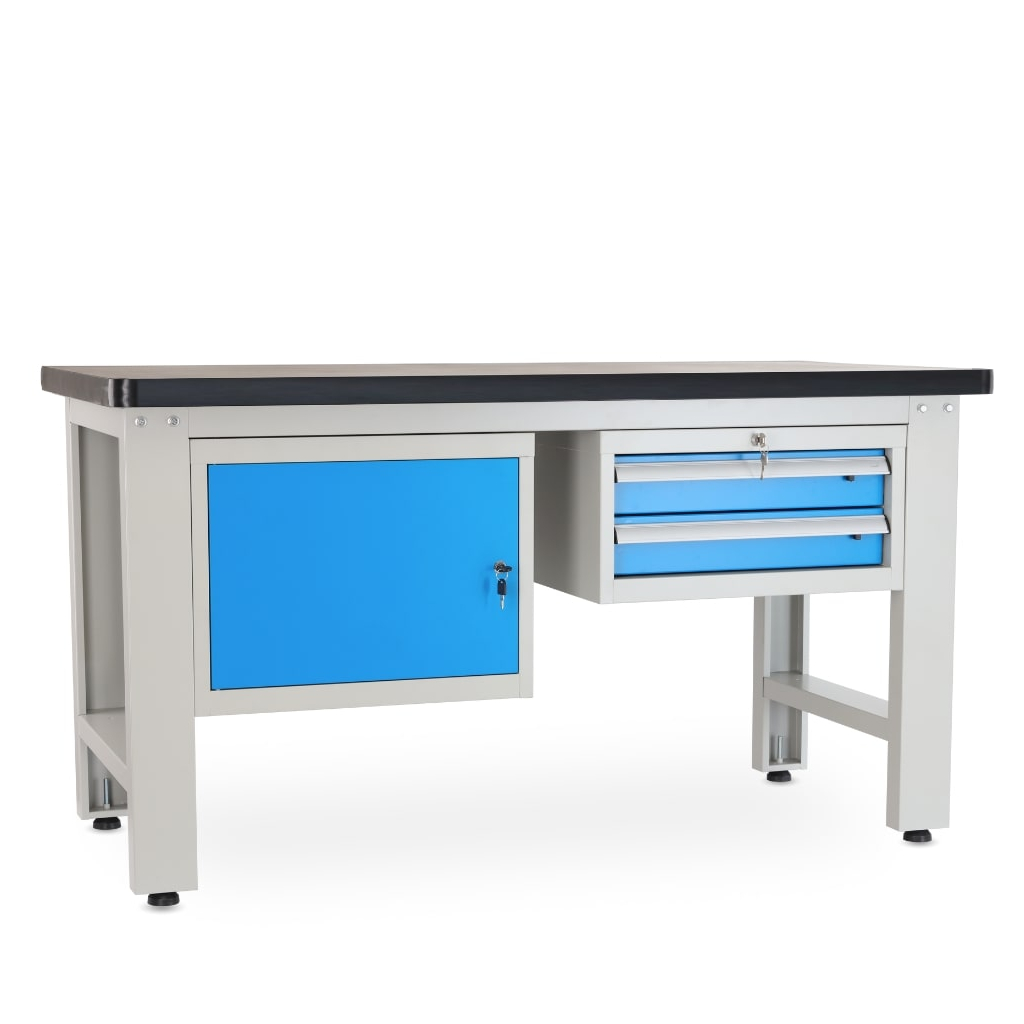 Tento typ stolu vám nabídne úložný prostor hned ve 2 různých modulech. Dvířka jsou lakovaná standardním odstínem RAL 5012, aby dokonale ladila i s dalším dílenským nábytkem.