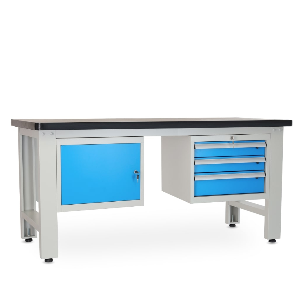 Tento typ stolu vám nabídne úložný prostor hned ve 2 různých modulech. Dvířka jsou lakovaná standardním odstínem RAL 5012, aby dokonale ladila i s dalším dílenským nábytkem.