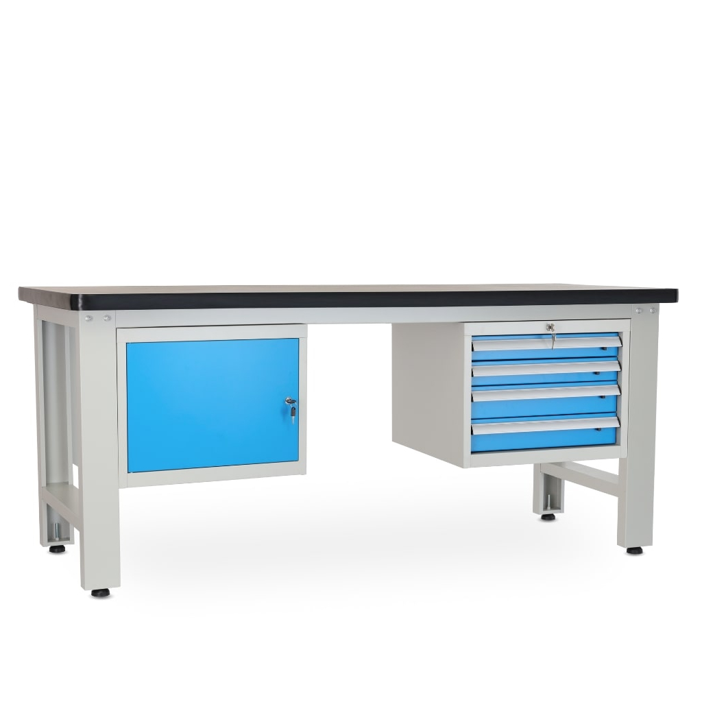 Tento typ stolu vám nabídne úložný prostor hned ve 2 různých modulech. Dvířka jsou lakovaná standardním odstínem RAL 5012, aby dokonale ladila i s dalším dílenským nábytkem.