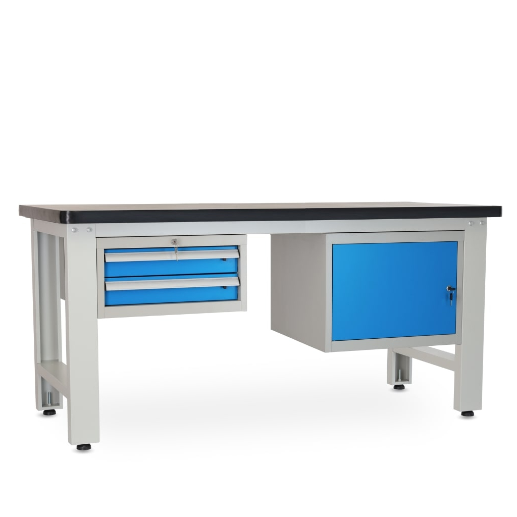 Tento typ stolu vám nabídne úložný prostor hned ve 2 různých modulech. Dvířka jsou lakovaná standardním odstínem RAL 5012, aby dokonale ladila i s dalším dílenským nábytkem.