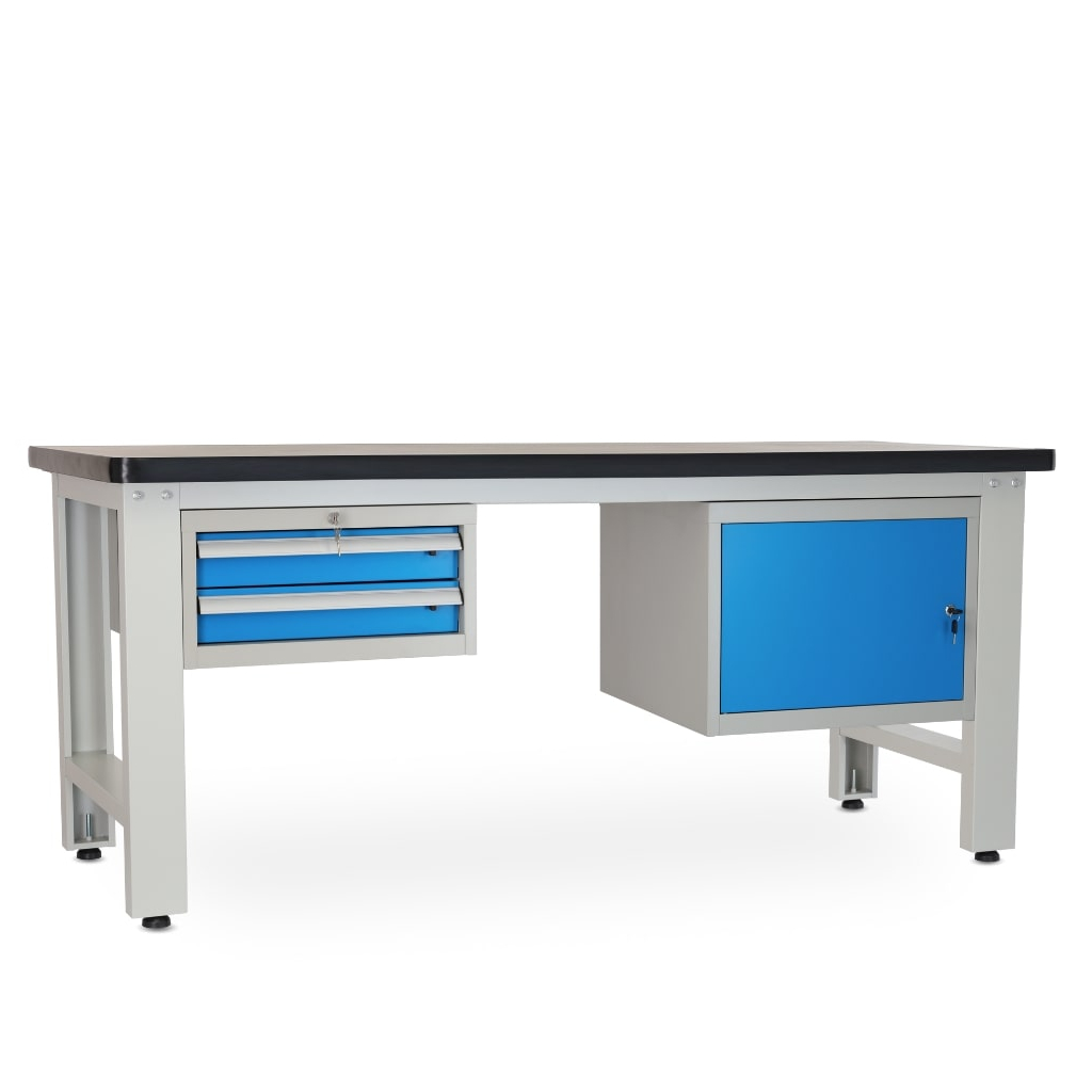 Tento typ stolu vám nabídne úložný prostor hned ve 2 různých modulech. Dvířka jsou lakovaná standardním odstínem RAL 5012, aby dokonale ladila i s dalším dílenským nábytkem.