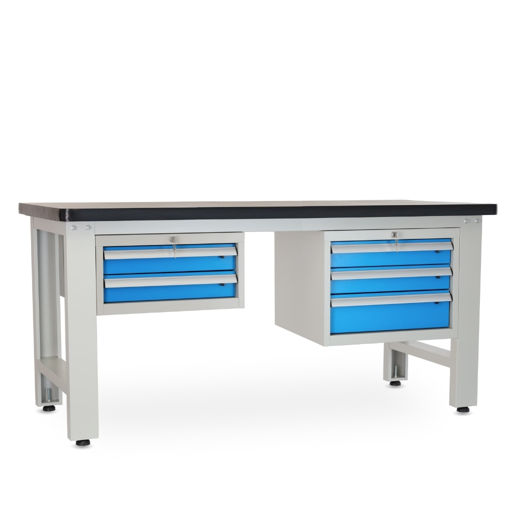 Tento typ stolu vám nabídne úložný prostor hned ve 2 různých modulech. Dvířka jsou lakovaná standardním odstínem RAL 5012, aby dokonale ladila i s dalším dílenským nábytkem.