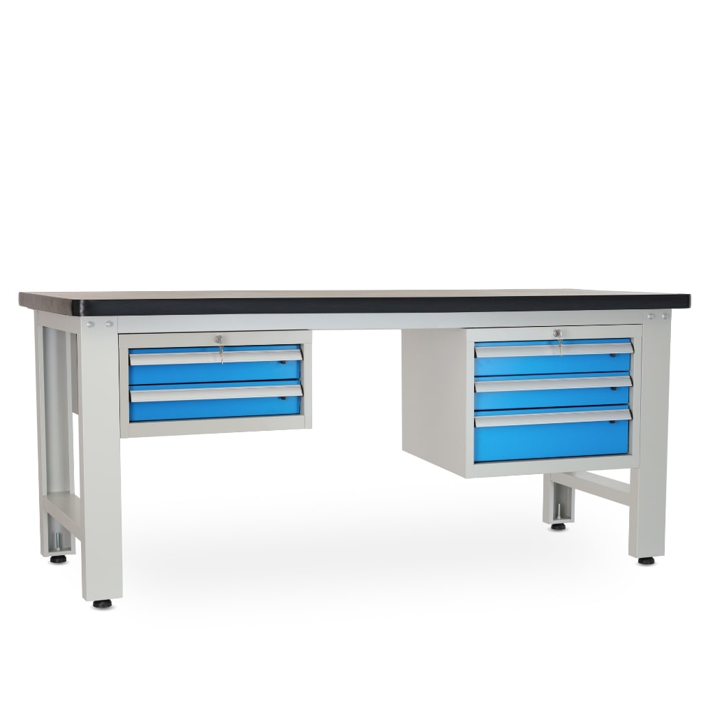 Tento typ stolu vám nabídne úložný prostor hned ve 2 různých modulech. Dvířka jsou lakovaná standardním odstínem RAL 5012, aby dokonale ladila i s dalším dílenským nábytkem.