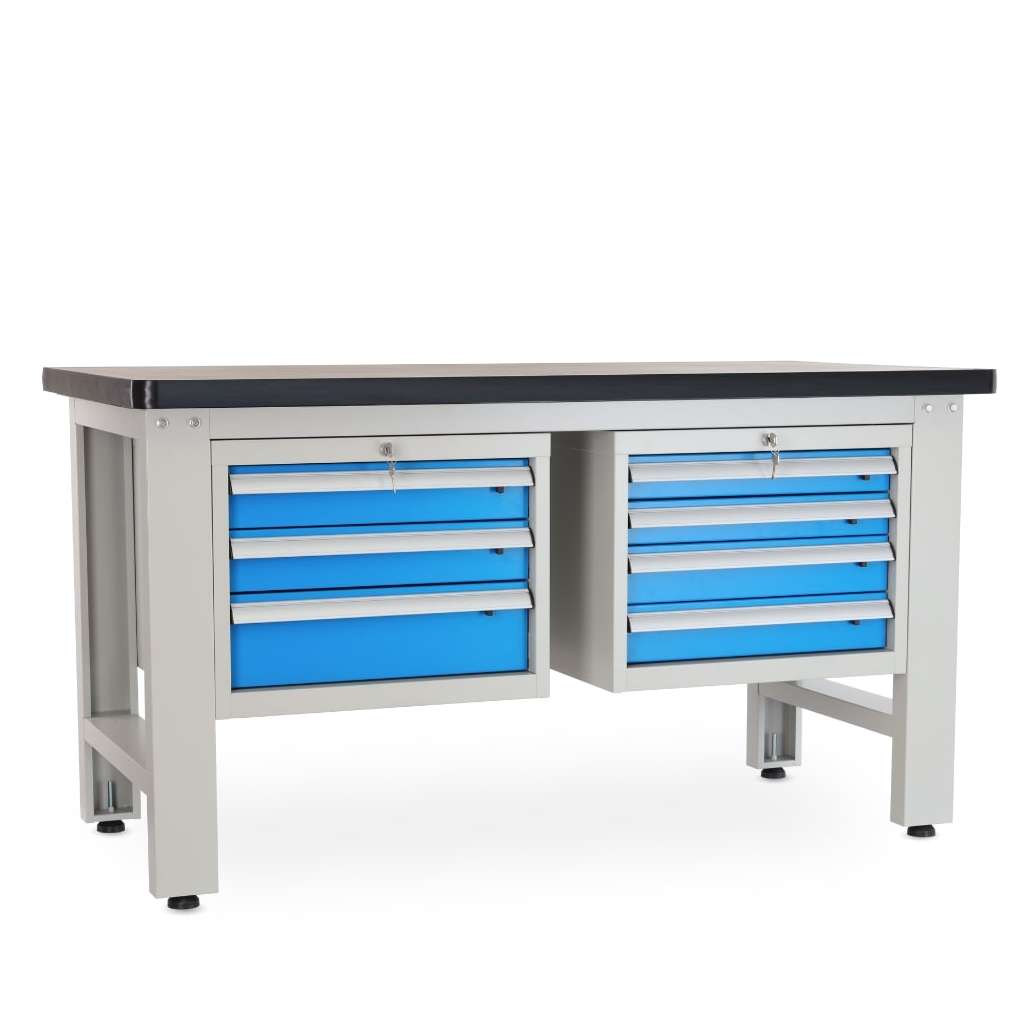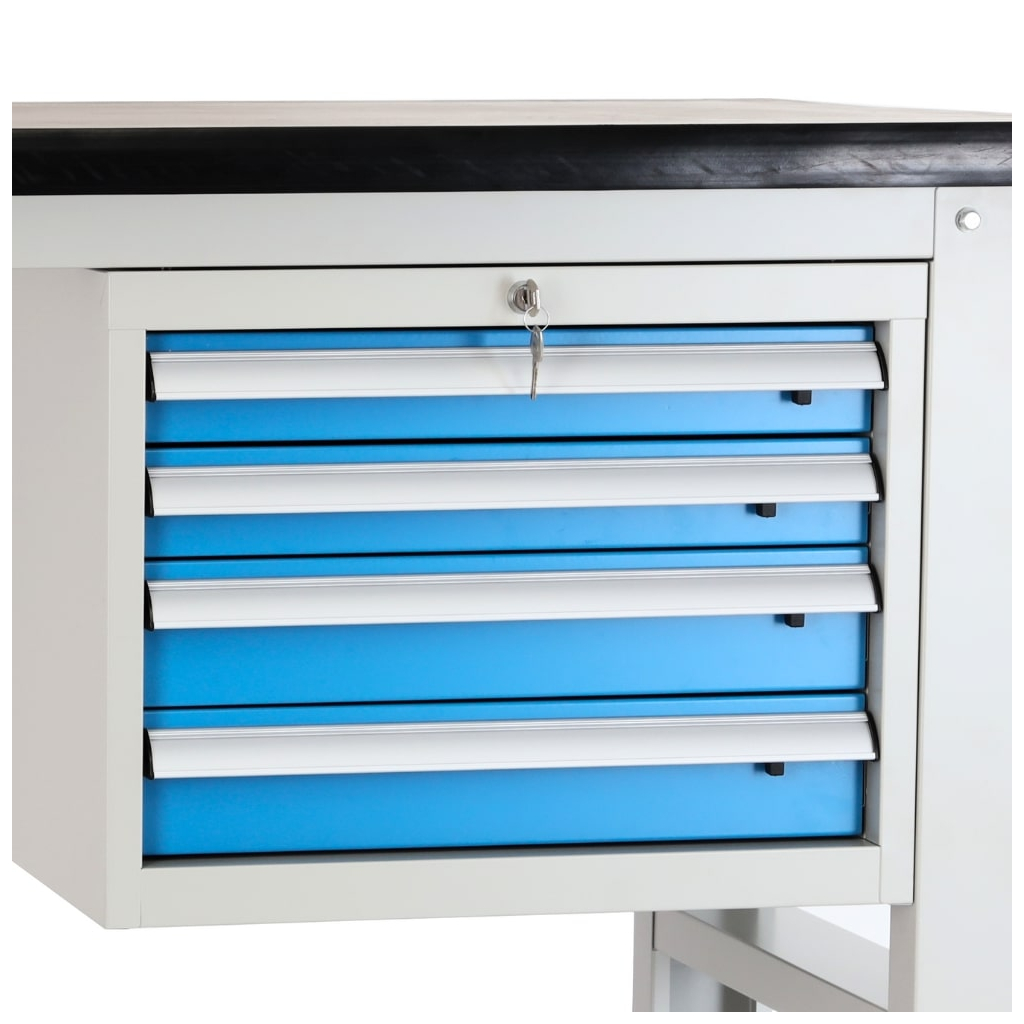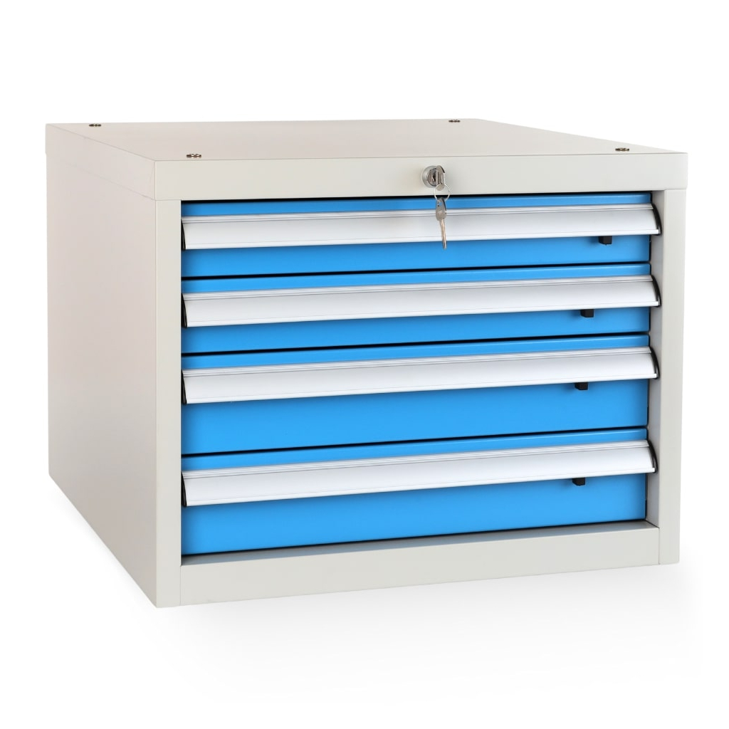 Tento typ stolu vám nabídne úložný prostor hned ve 2 různých modulech. Dvířka jsou lakovaná standardním odstínem RAL 5012, aby dokonale ladila i s dalším dílenským nábytkem.