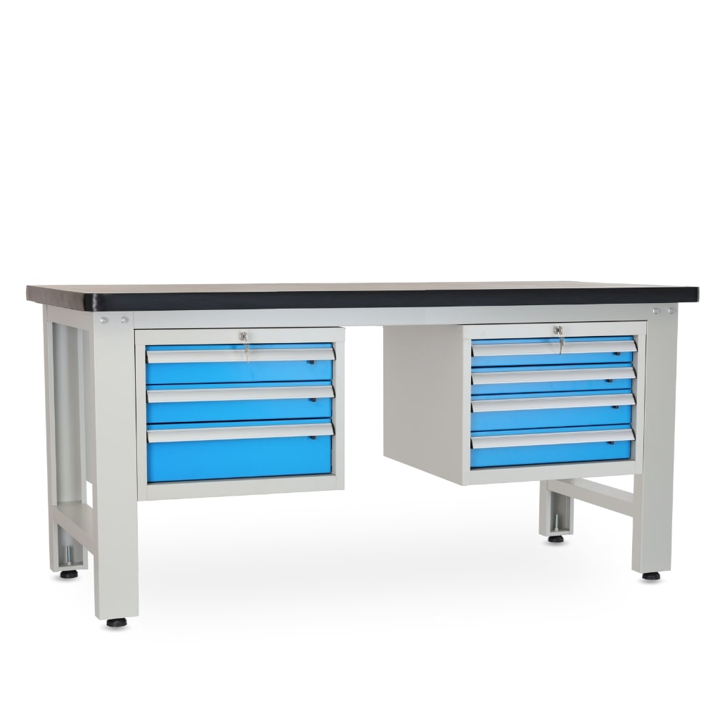 Tento typ stolu vám nabídne úložný prostor hned ve 2 různých modulech. Dvířka jsou lakovaná standardním odstínem RAL 5012, aby dokonale ladila i s dalším dílenským nábytkem.