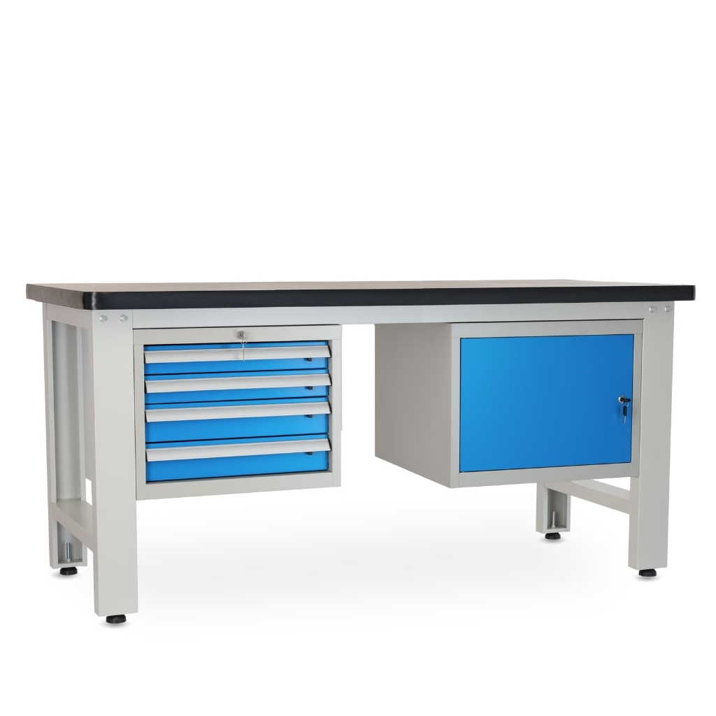 Tento typ stolu vám nabídne úložný prostor hned ve 2 různých modulech. Dvířka jsou lakovaná standardním odstínem RAL 5012, aby dokonale ladila i s dalším dílenským nábytkem.