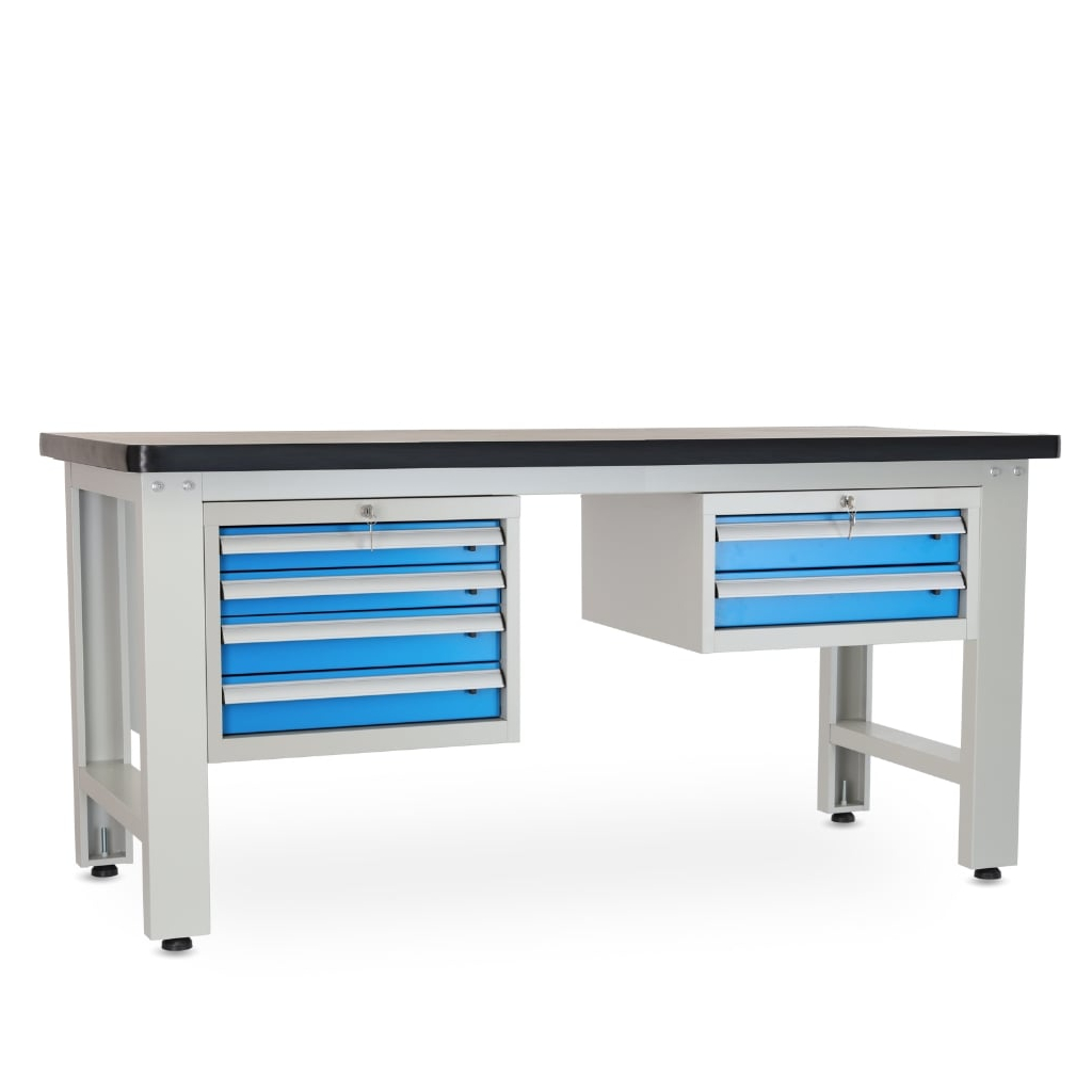 Tento typ stolu vám nabídne úložný prostor hned ve 2 různých modulech. Dvířka jsou lakovaná standardním odstínem RAL 5012, aby dokonale ladila i s dalším dílenským nábytkem.