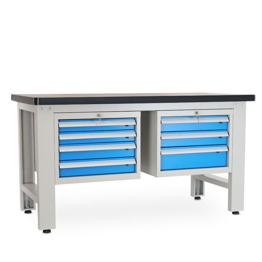 Tento typ stolu vám nabídne úložný prostor hned ve 2 různých modulech. Dvířka jsou lakovaná standardním odstínem RAL 5012, aby dokonale ladila i s dalším dílenským nábytkem.