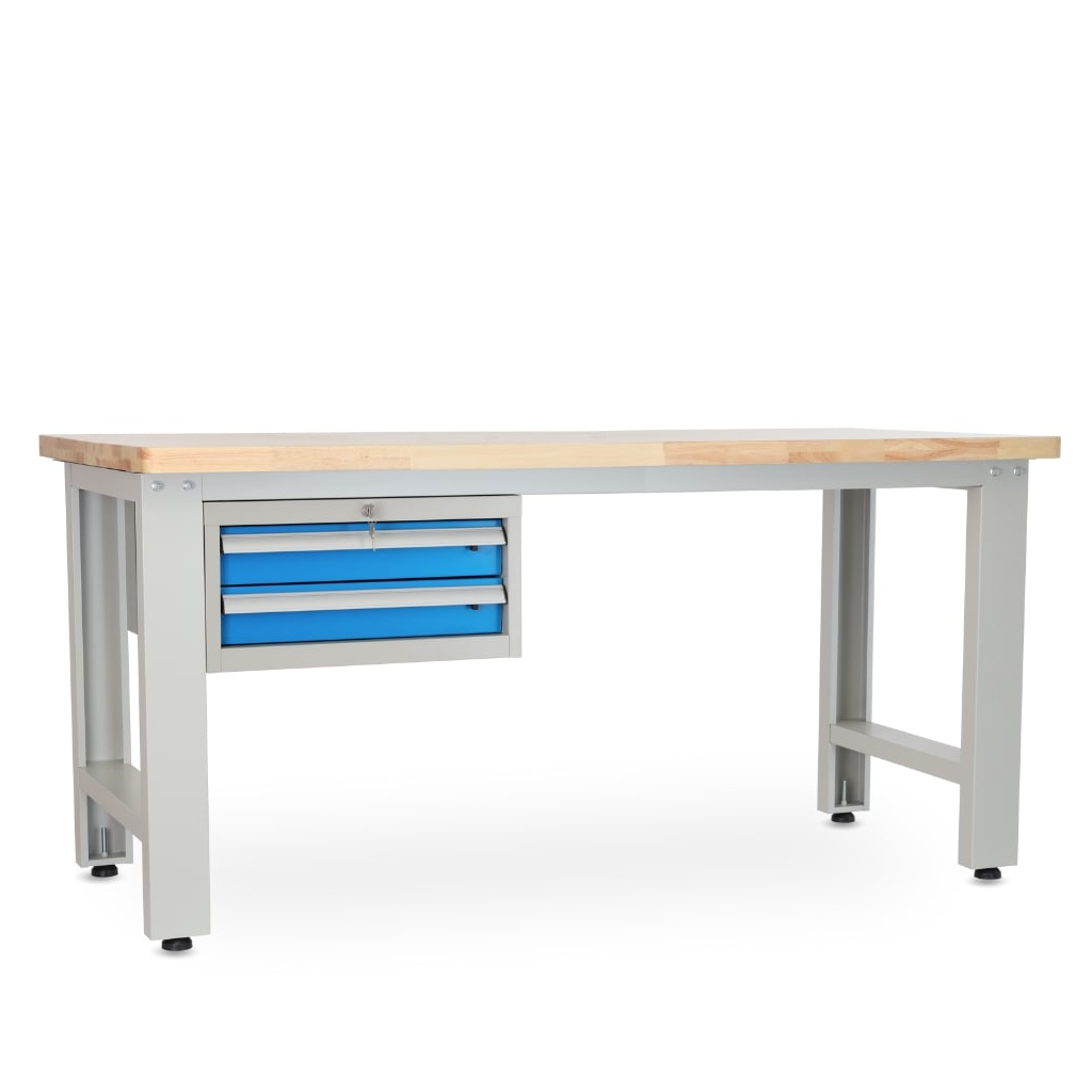 Stůl se chlubí úložným modulem, kam si odložíte nářadí nebo součástky, které zrovna nepotřebujete na stole. Dvířka jsou lakovaná standardním odstínem RAL 5012, aby dokonale ladila i s dalším dílenským nábytkem.