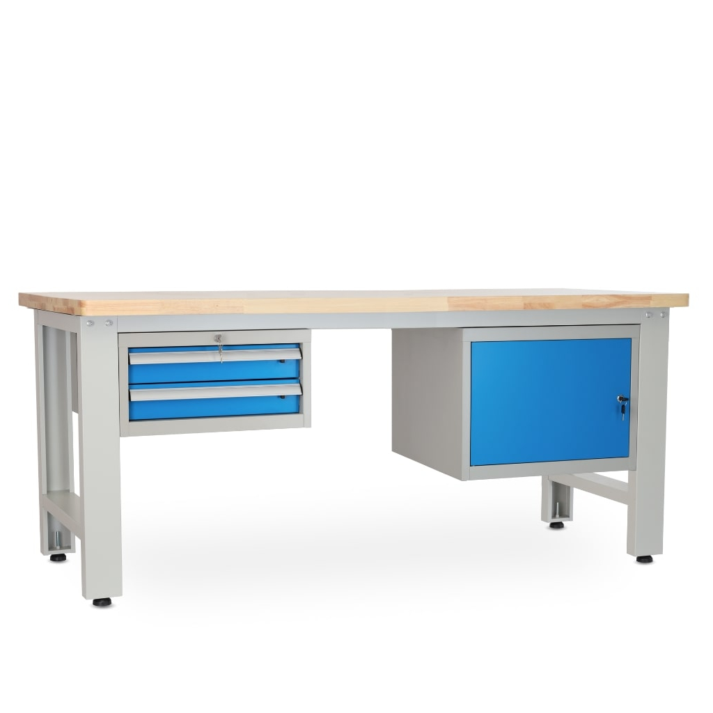 Tento typ stolu vám nabídne úložný prostor hned ve 2 různých modulech. Dvířka jsou lakovaná standardním odstínem RAL 5012, aby dokonale ladila i s dalším dílenským nábytkem.