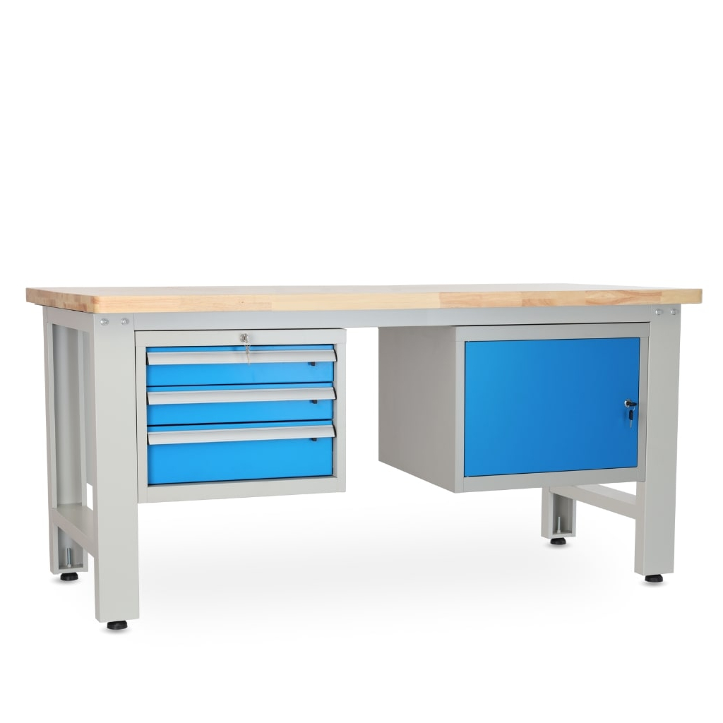 Tento typ stolu vám nabídne úložný prostor hned ve 2 různých modulech. Dvířka jsou lakovaná standardním odstínem RAL 5012, aby dokonale ladila i s dalším dílenským nábytkem.