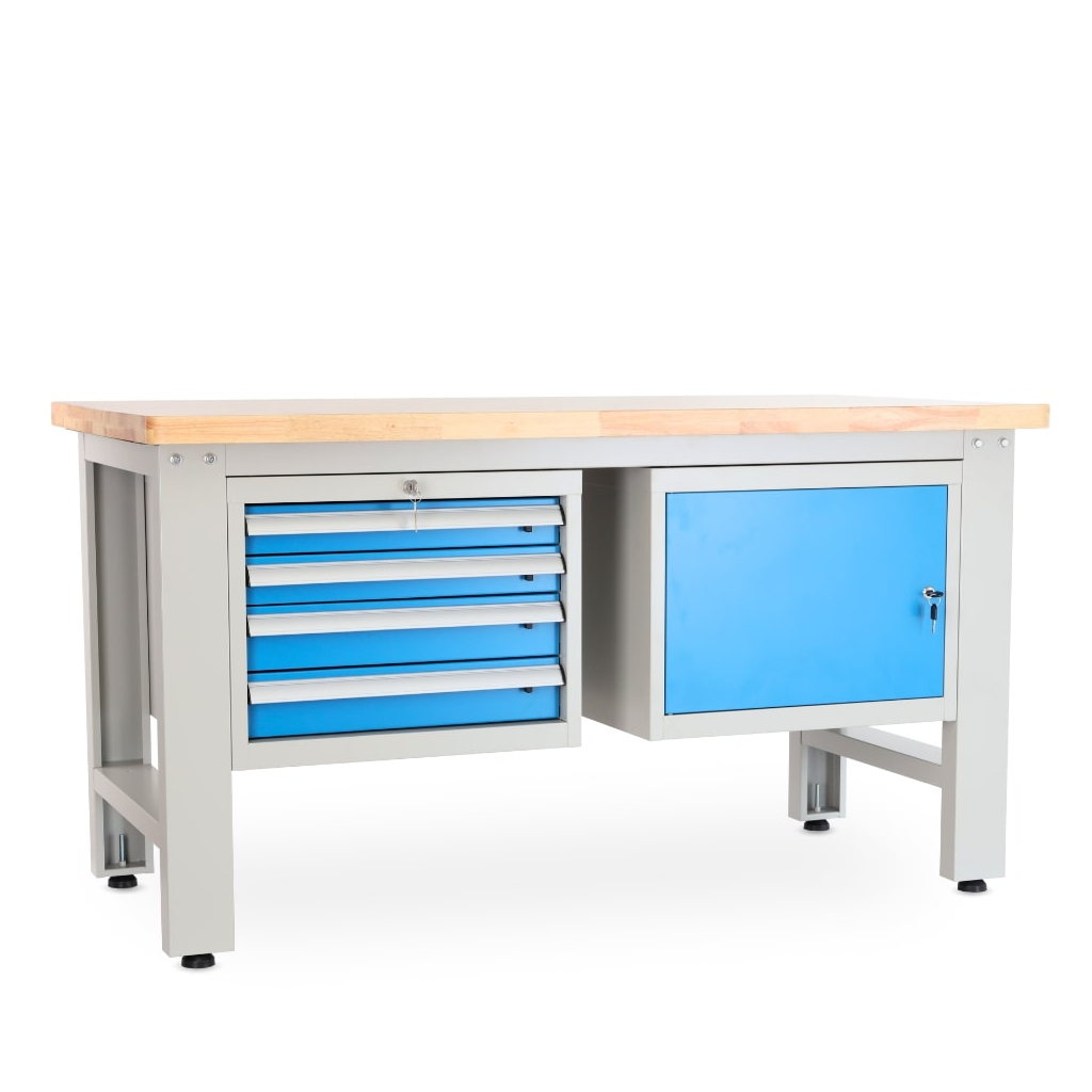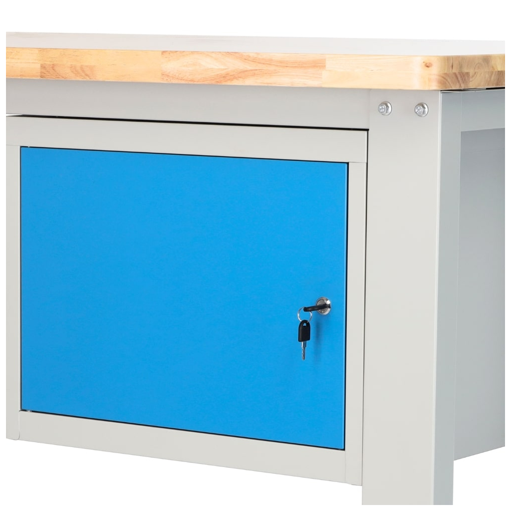 Tento typ stolu vám nabídne úložný prostor hned ve 2 různých modulech. Dvířka jsou lakovaná standardním odstínem RAL 5012, aby dokonale ladila i s dalším dílenským nábytkem.