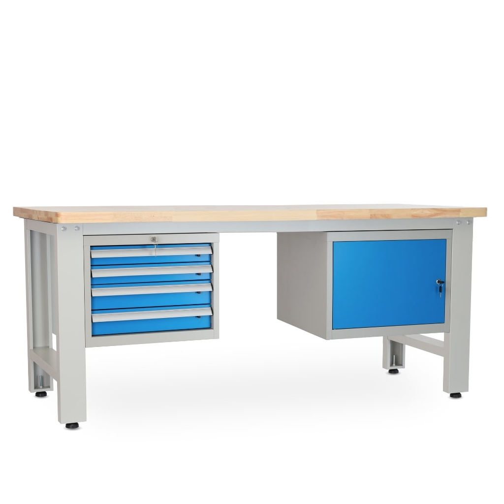 Tento typ stolu vám nabídne úložný prostor hned ve 2 různých modulech. Dvířka jsou lakovaná standardním odstínem RAL 5012, aby dokonale ladila i s dalším dílenským nábytkem.