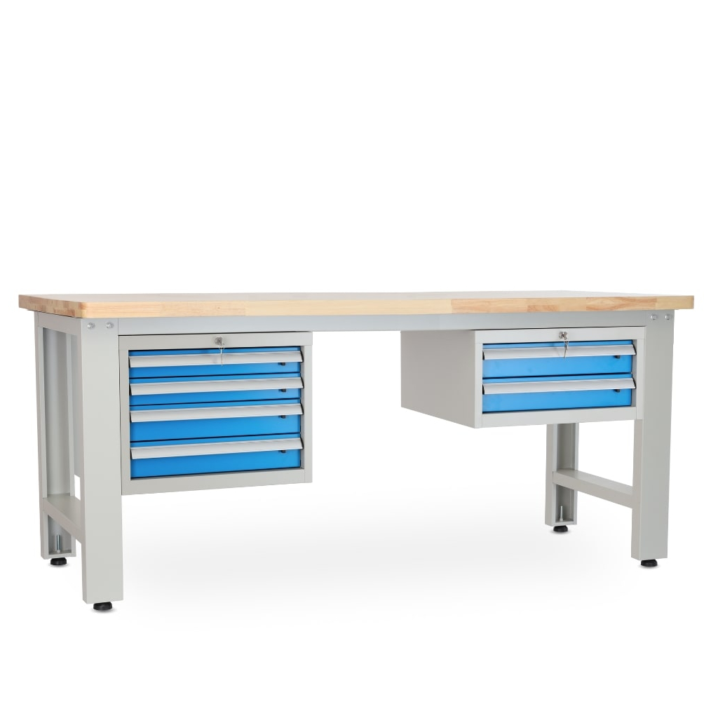 Tento typ stolu vám nabídne úložný prostor hned ve 2 různých modulech. Dvířka jsou lakovaná standardním odstínem RAL 5012, aby dokonale ladila i s dalším dílenským nábytkem.