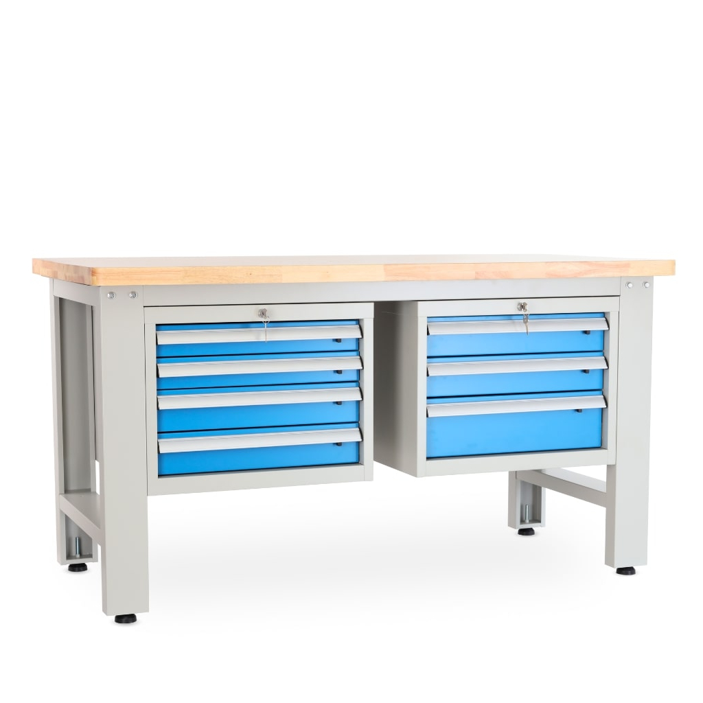 Tento typ stolu vám nabídne úložný prostor hned ve 2 různých modulech. Dvířka jsou lakovaná standardním odstínem RAL 5012, aby dokonale ladila i s dalším dílenským nábytkem.