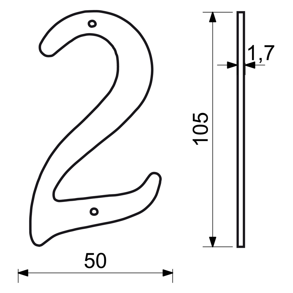 Ozdobné domovní číslo "2" ve 2D provedení využijete při identifikaci objektů - jako součást popisného čísla na fasádě domu, firmy či jiných budov. Je vyrobené z hliníku. Všechna čísla a znaky z této řady mají stejnou výšku i tloušťku. Poskládáte si tak popisné a orientační číslo v jednom stylu. Tento typ domovního čísla je vhodný pro instalaci na hladké dřevěné nebo plastové podklady.
