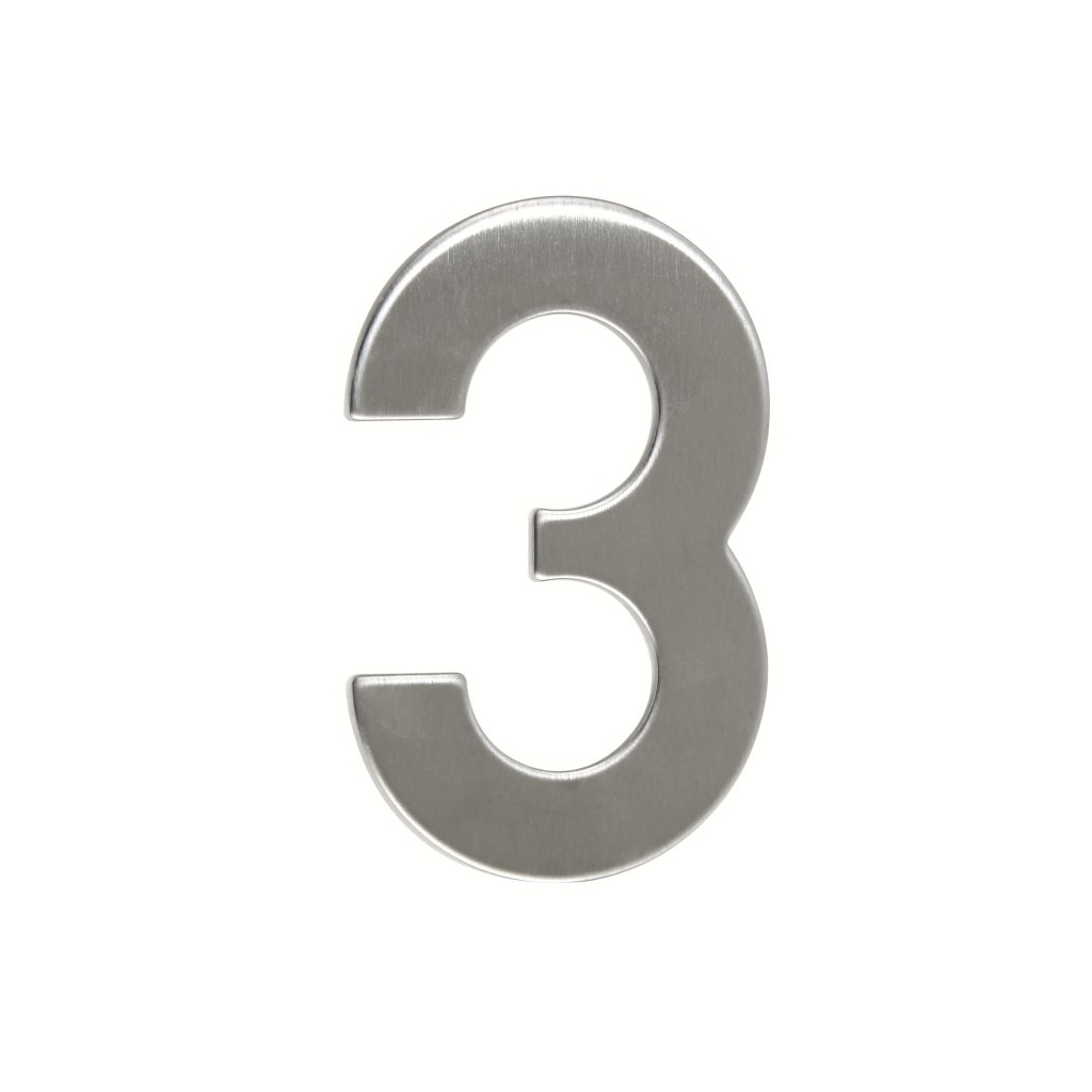 Domovní číslo "3" ve 2D provedení využijete při identifikaci objektů - jako součást popisného čísla na fasádě domu, firmy či jiných budov. Je vyrobené z nerezové oceli. Všechna čísla a znaky z této řady mají stejnou výšku i tloušťku. Poskládáte si tak popisné a orientační číslo v jednom stylu. Tento typ domovního čísla je vhodný pro instalaci na středně hrubé a hladké povrchy.
